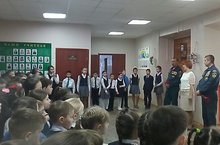Минутой молчания учащиеся и гости почтили память погибших на афганской и чеченской войнах, возложил цветы к памятной стеле.
