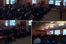 Представители полиции Халикова Р.Ф., Байдуганов И.Н. - начальник отдела участковых уполномоченных полиции выступили на классном часе перед учащимися 5-11 классов на тему "Права и обязанности, ответственность несовершеннолетних детей"
