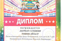Поздравляем Тошеву Айсылу -Лауреата 1 степени Всероссийского конкурса детского и юношеского творчества "Звездная карусель"г. Зеленодольск 17.11.2017