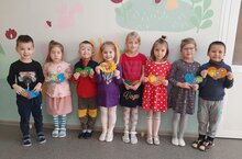 Сегодня наши самые младшие воспитанники группы «Капельки» совместно с воспитателем Ахаевой О.Ю. выполнили коллективную аппликацию «Букет всем мамам». Поздравительная открытка получилась очень красивой и яркой.