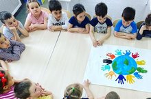 На тематическом занятии в средней группе "Звездочки", воспитатель Утяшова Ю.А. поговорила с детьми о том, что наша планета нуждается в защите. О том, что всем нам хочется, чтобы на ней цвели сады, в небе светило солнце, звучал детский смех. Ребята посмотрели презентацию и изготовили коллективную работу,посвящённую Международному Дню Земли!