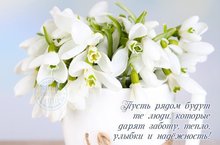 С праздником весны, очарования, красоты и женственности! Желаем весеннего настроения, пусть на душе всегда будет светло и радостно. Желаем, чтобы на лице всегда сияла улыбка, пусть жизнь будет щедра на подарки. В самый женский день года желаем простого женского счастья и здоровья. С праздником!