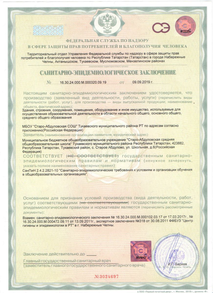 Муниципальное бюджетное общеобразовательное учреждение «Старо-Абдуловская средняя общеобразовательная школа» Тукаевского муниципального района РТ/Татарстан Республикасы Тукай муниципаль районы "Иске Абдул урта гомуми белем биру мәктәбе"гомуми белем муниципаль бюджет учреждениесе