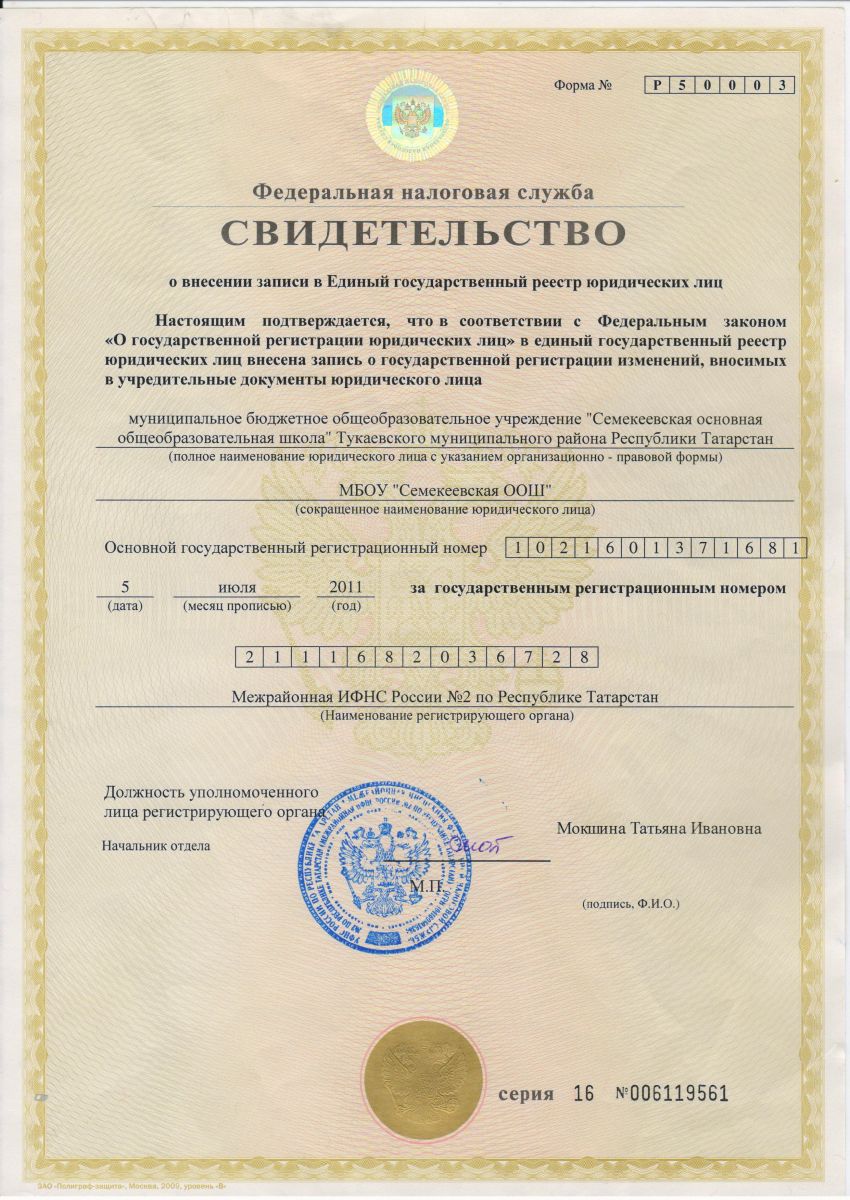 Свидетельство о внесении записи в единый государственный реестр юридических лиц2