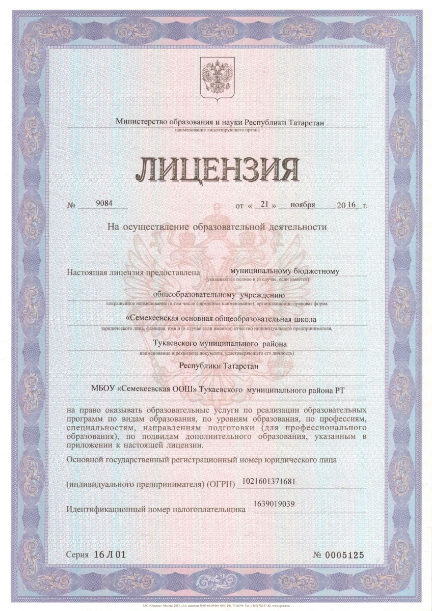 Лицензия на осуществление образовательной деятельности 1