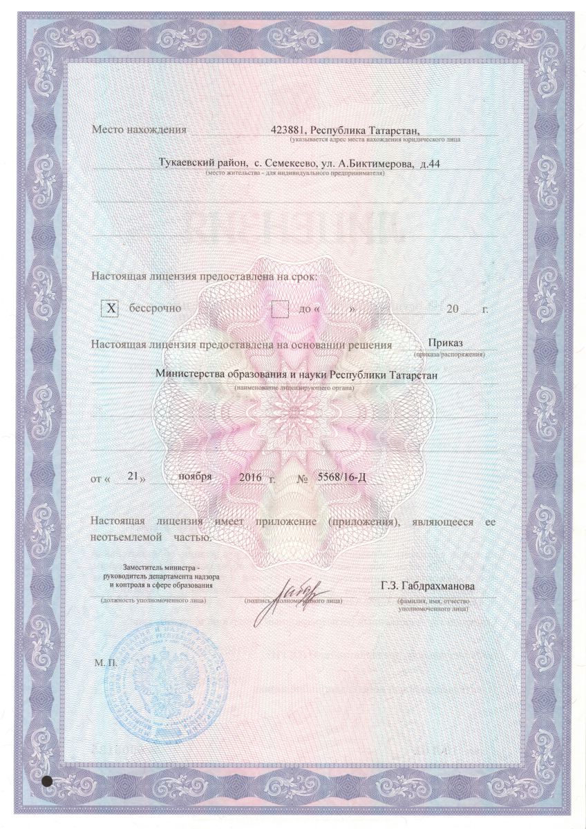 Лицензия на осуществление образовательной деятельности 2