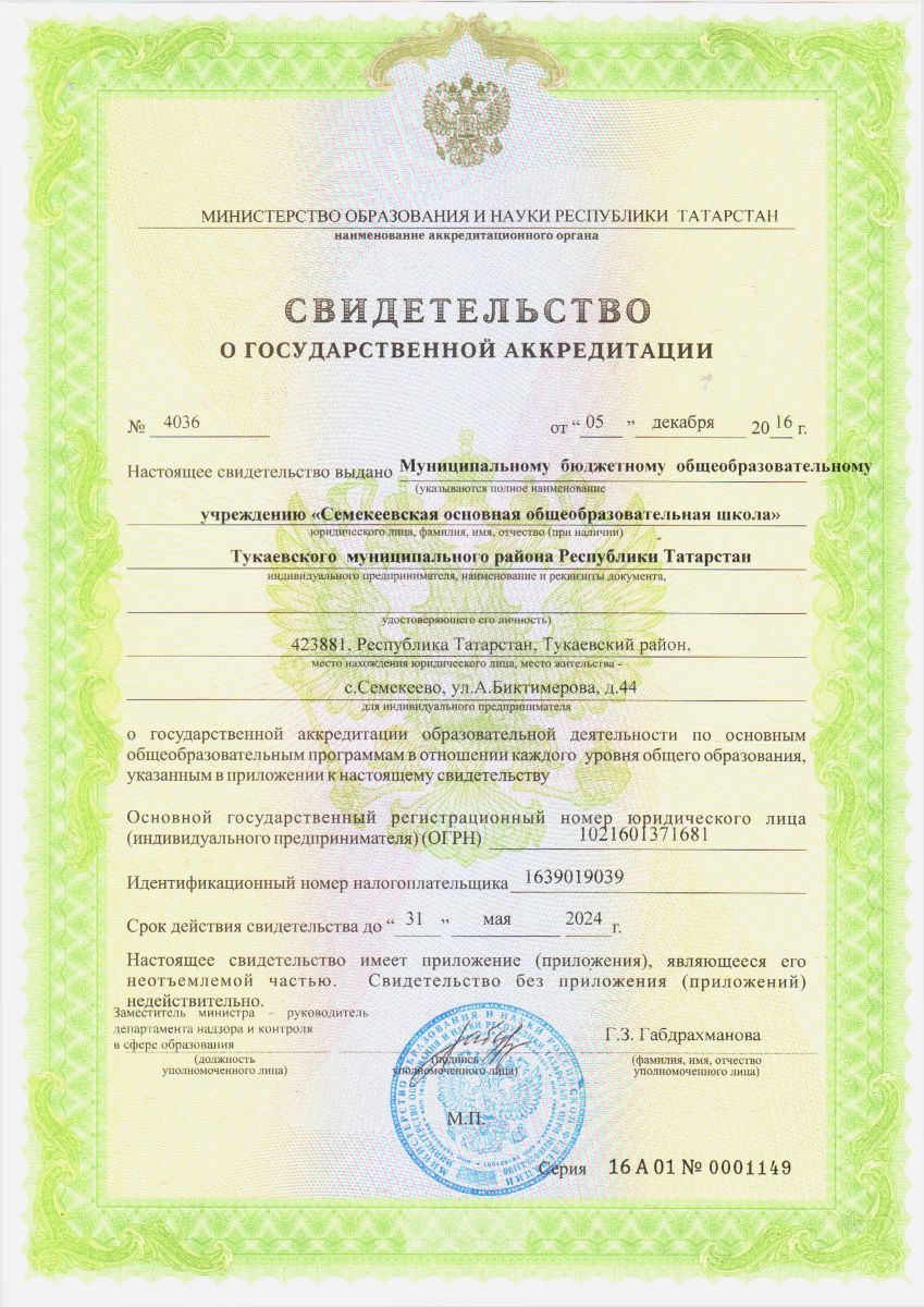 Муниципальное бюджетное общеобразовательное учреждение "Семекеевская основная общеобразовательная школа" Тукаевского муниципального района РТ / Татарстан Республикасы Тукай муниципаль районы "Сәмәкәй төп гомуми белем бирү мәктәбе" муниципаль бюджет гомуми белем бирү учреждениесе