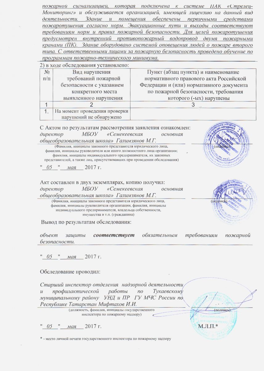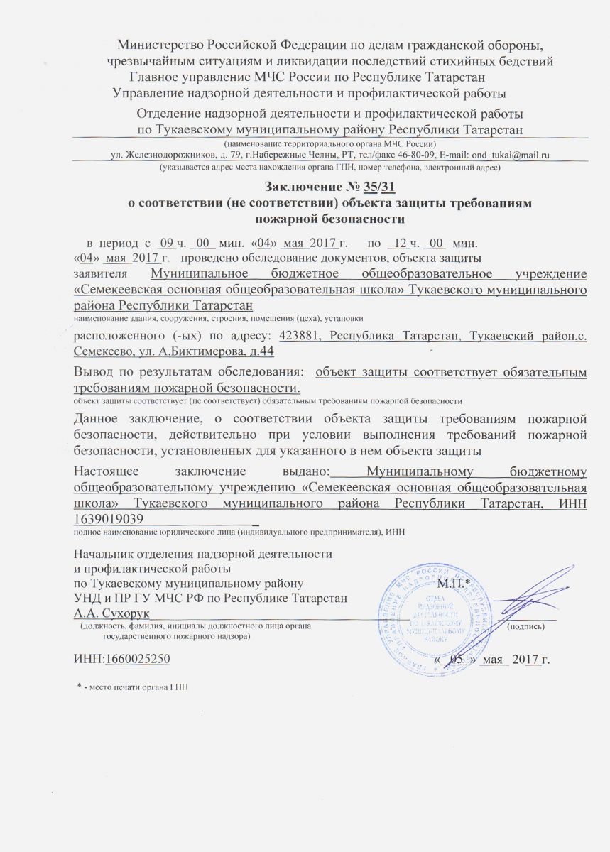заключение пожарной безопасности