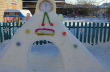 Зима – раздолье для зимних игр и забав. Несмотря на морозную погоду воспитатели с родителями детей собрались для изготовления снежных построек.. Они сделали : Снеговика, снежную горку, божью коровку и крепость. Данные поделки в течение зимы будут использоваться для формирования у детей основных видов движений и сюжетных игр детей. Прогулки будут проходить весело и интересно.