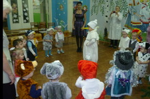 Сегодня, 26 декабря, прошёл утренник в старшей группе «Волшебство Деда Мороза и Снегурочки». Дети пели песни, водили хороводы, читали стихи про Деда Мороза и зиму, Снегурочку и новый год. В гости на праздник приходили Баба-Яга с сыночком Цыпой. Превращение маленького торта в огромный было для детей приятным сюрпризом.