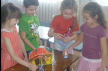 Наши дошколята очень любят разыгривать различные сказки.В процессе продуктивной деятельности, ребята совместно с воспитателем татарского языка Майоровой Р.М.сами вырезали и клеяли героев сказки , затем показывали настольный театр для младшей группы.Все ребята довольны своей работой.
