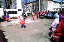 Девочки старшей группы исполнили танец для ветеранов у памятника погибших героев в Великой Отечественной войне.