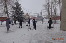 Сегодня ученики 6-7 класса очищали территорию памятника от снега.
