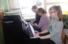 Учитель музыки Маратаева Мария Михайловна во внеурочное время обучает детей азам музыкальной грамоты.