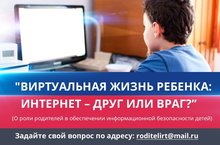Тема: Виртуальная жизнь ребенка- интернет друг или враг?