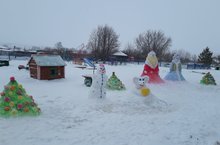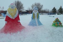"Снежная сказка" нашего участка. В этом году по традиции к нам пришли в гости Дедушка Мороз и Снегурочка. А также Снеговик-почтовик, Колобок, Белая Крыса.