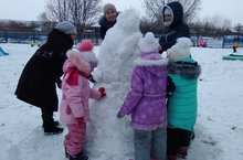 Создание снежных построек на участке, стало традиционным в нашем детском саду. Яркие, забавные фигуры украшают территорию нашего детского сада. Используя удивительный материал – снег, воспитатели погрузились в процесс совместного творчества- сооружения необыкновенных снежных фигур.