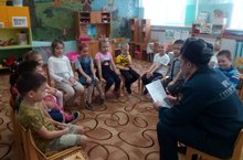 Сотрудник МЧС Сахапов Р.Р. приготовил для воспитанников интересные и познавательные вопросы по основам безопасности, в процессе чего состоялась увлекательная беседа с детьми. Ребятам объяснили, почему "спички - детям не игрушка", что игра с огнём очень опасна, огонь приносит много добра, но без присмотра может превратиться в жестокого врага человека.