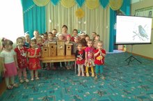 Уртанчылар төркеме тәрбиячесе Хафизова Гүзәл “Кошларга ярдәм итү” темасына ачык шөгыль үткәрде. Балаларны яз, “күчмә кошлар”, сыерчык белән таныштырды. Тышкы кыяфәтләренә, аерым билгеләренә карап танырга, дөрес атарга, кош оялары ясарга өйрәтте.