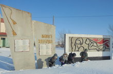 Без, “Акчәчәк” балалар бакчасы балалары, мәдәният йорты биләмәсендә урнашкан, Бөек Ватан сугышында катнашып, яу кырында ятып калган авылдашларыбыз истәлегенә куелган обелискны кардан чистартып кайттык.