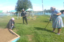 Балалар бакчасы территориясен үләннән чистартуда әти-әниләр булышты.