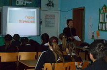 На классном часе « Герои Отечества» для 6-8-х классов учитель истории Яхина Р.А. показала учащимся познавательную презентацию о Героях, провела викторину на знание биографий известных личностей. Ребята узнали много нового и интересного из рассказа учителя о Героях - наших земляках. -