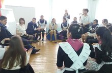 На базе площадки "Тренинг-классов" в школе среди старшеклассников был проведен тренинг, напрвленный на развитие умения работать в команде. (Тренеры: Гильмеева Г.З., Ахметшина.Ч.А.)