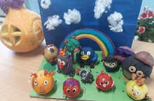 Традиционно каждый год в нашей школе проходит выставка поделок из осеннего материала. В этом году ребята тоже потрудились на славу. Было много интересных персонажей и предметов из листьев, сушеных ягод и овощей. Среди коллективных работ 1 место заняла работа коллектива 8 класса "Смешарики" (кл. рук Ахметшина Ч.А.). Все работы были отмечены Грамотами.