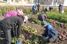 Осень — время сбора урожая.Сентябрьская погода порадовала нас тёплым солнечным деньком и мы, вооружившись перчатками, вёдрами и вилами, отправились на пришкольные участки, собирать урожай.