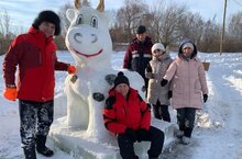 Силами педагогов школы- интерната изготовлена снежная фигура для районной елки
