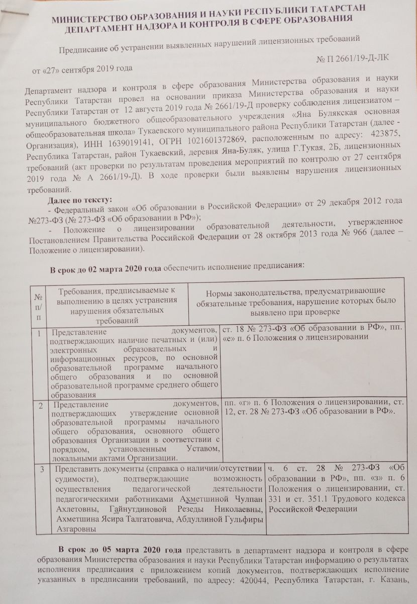 Предписания органов, осуществляющих госконтроль в сфере образования/Мәгариф өлкәсендә дәүләт контролен гамәлгә ашыручы органнар күрсәтмәләре