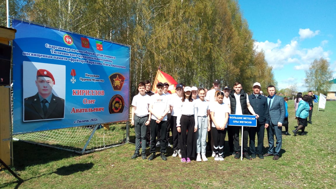 14 мая была проведёна спартакиада по многоборью среди учащихся 5-10 классов общеобразовательных школ Тюлячинского муниципального района, посвященная памяти выпускника МБОУ-Большемешинской средней общеобразовательной школы ефрейтора Кириллова Олега Анатольевича.