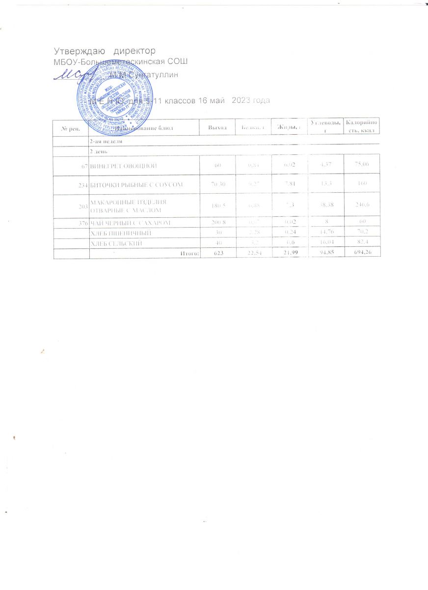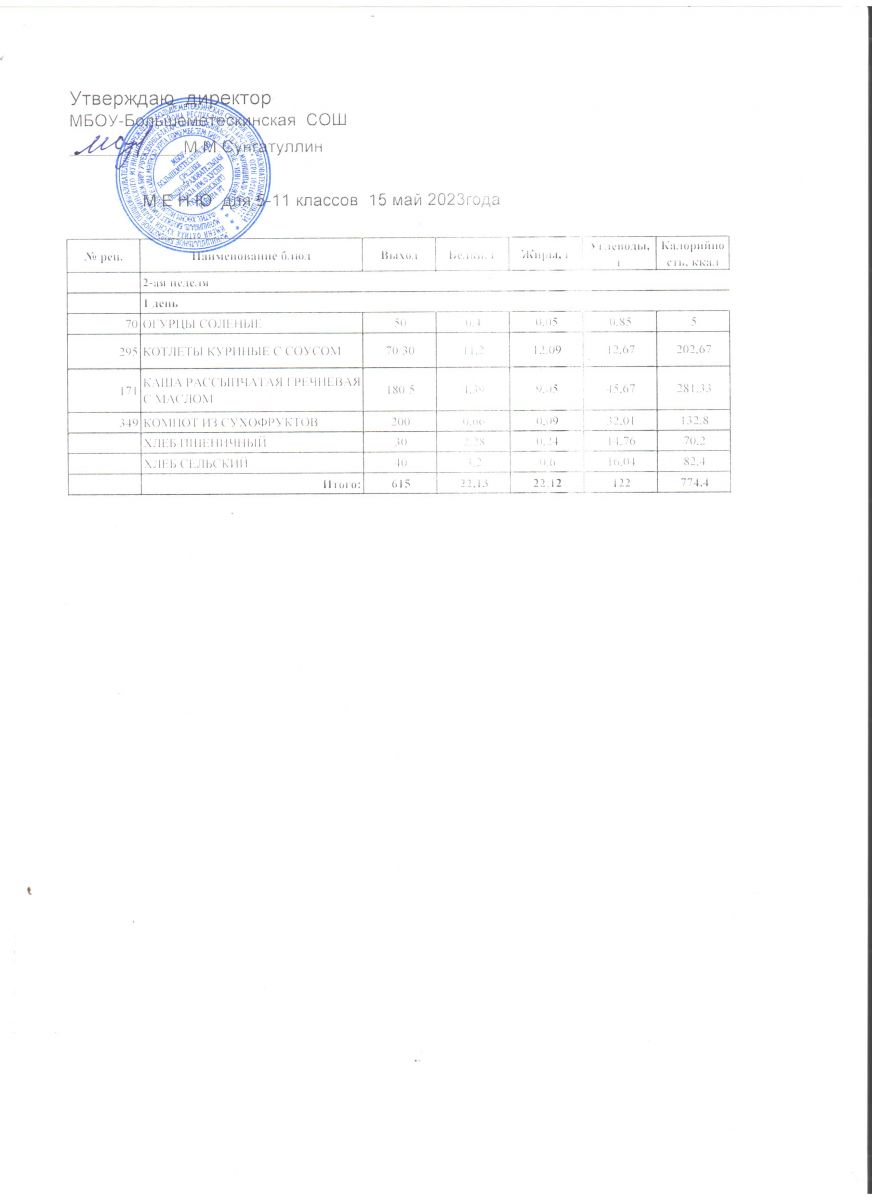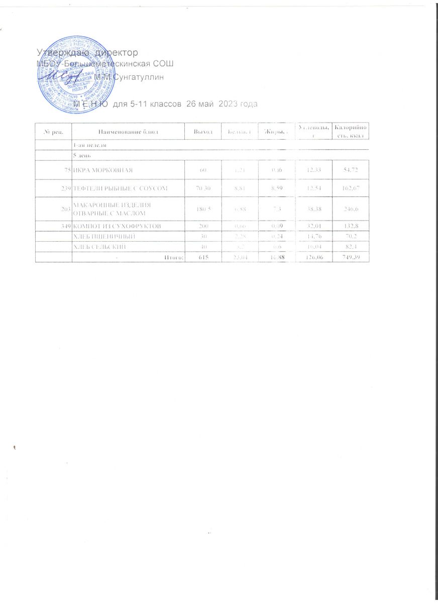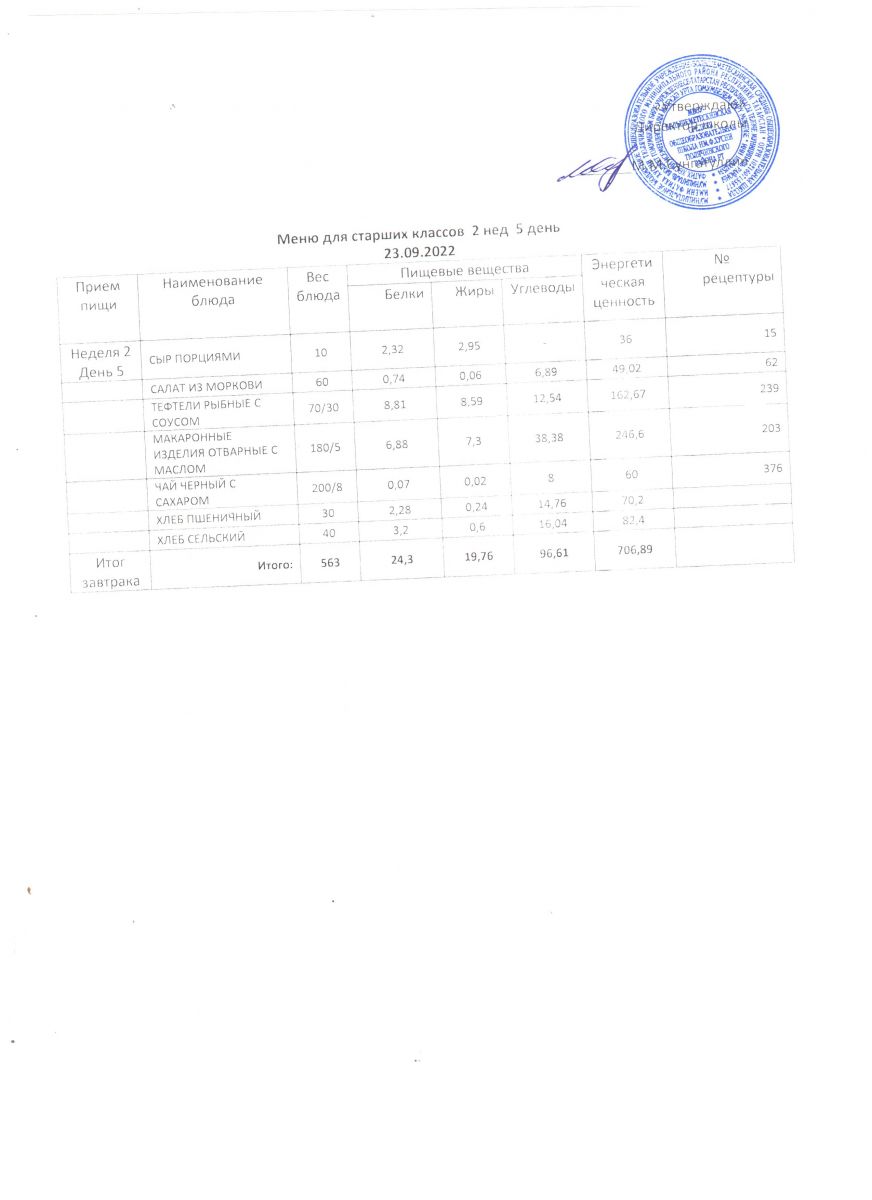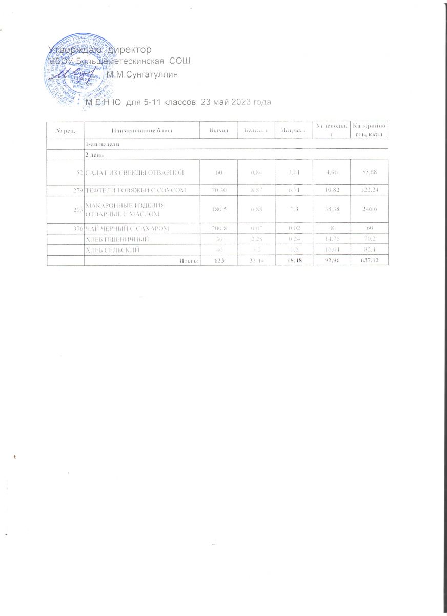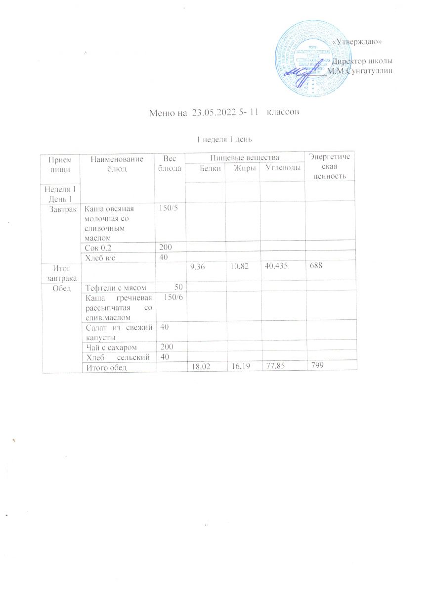 Меню для 5 - 11 классов на 23.05.2022 г.
