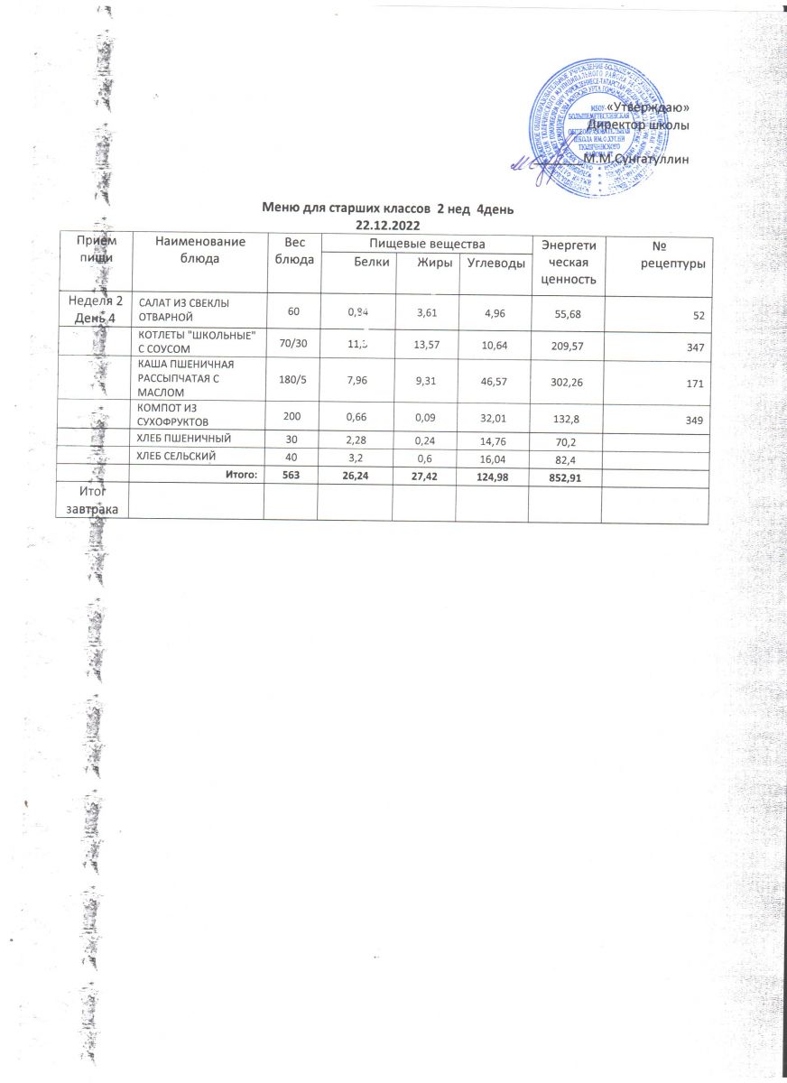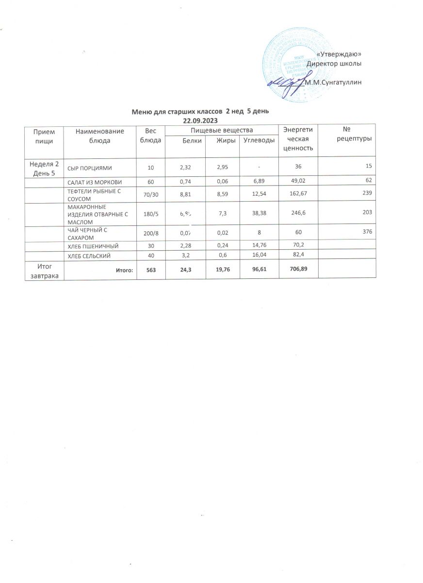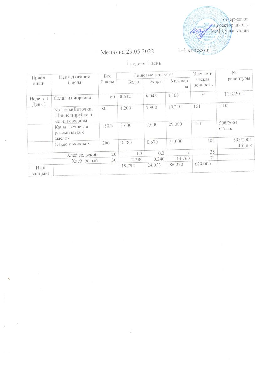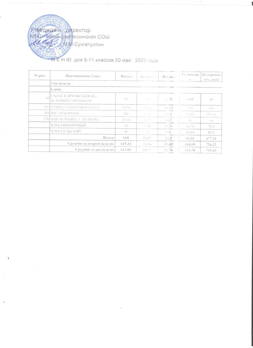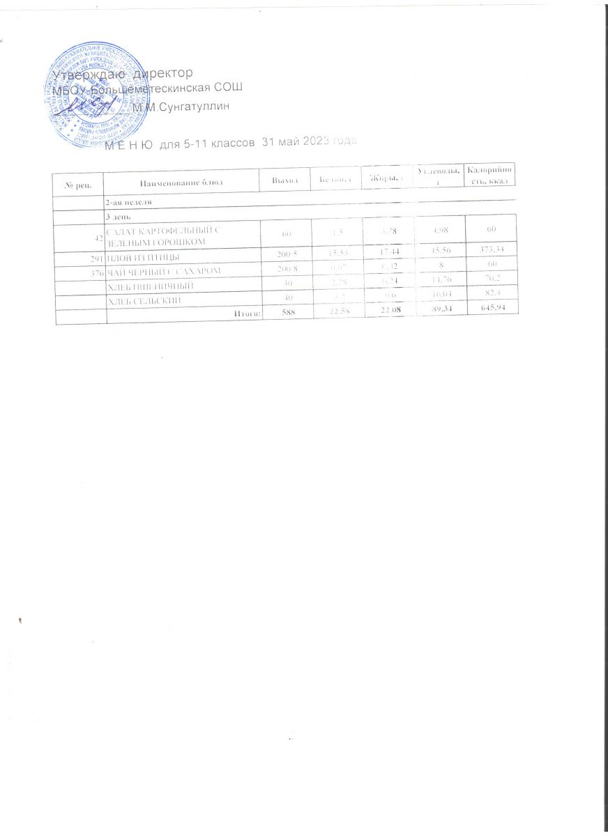 Меню для 5 - 11 классов на 23.05.2022 г.