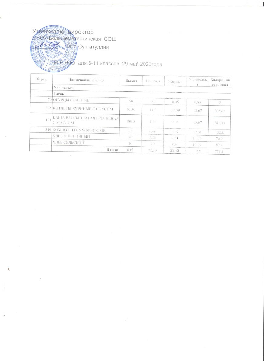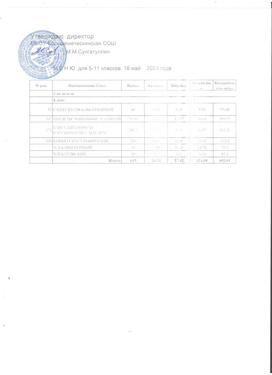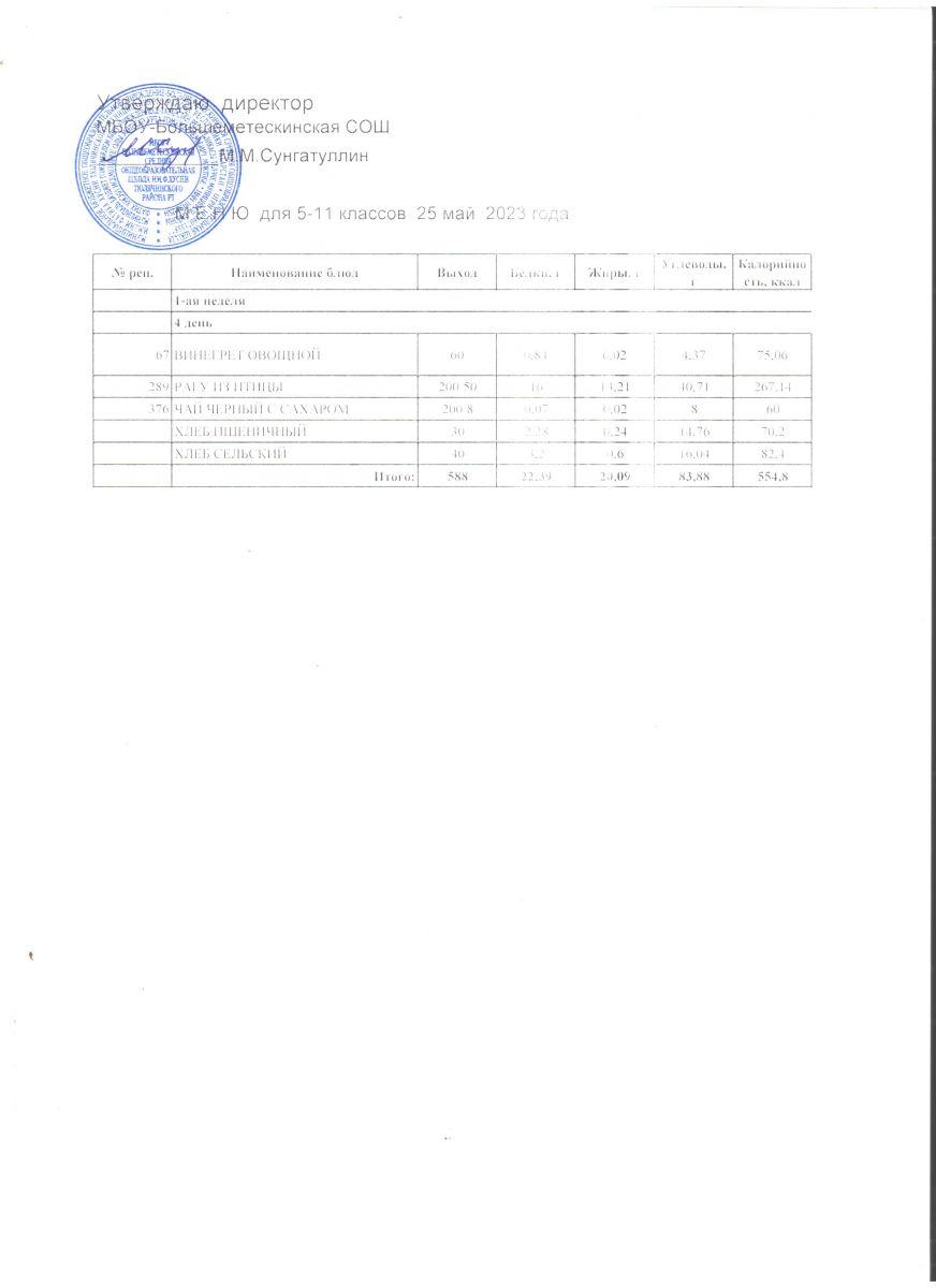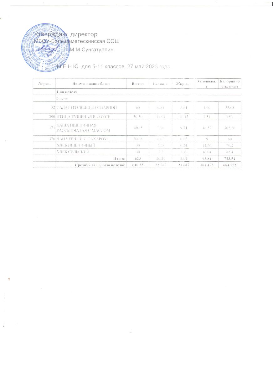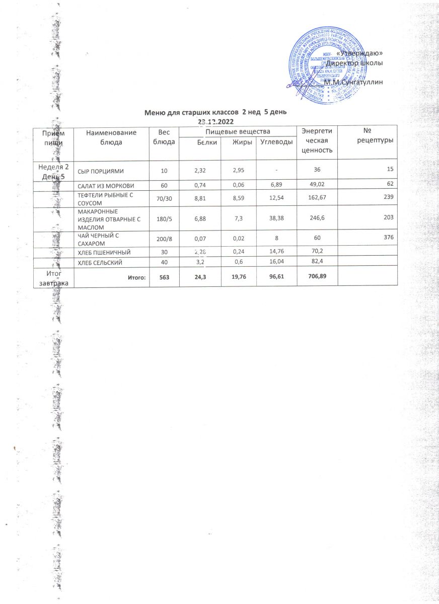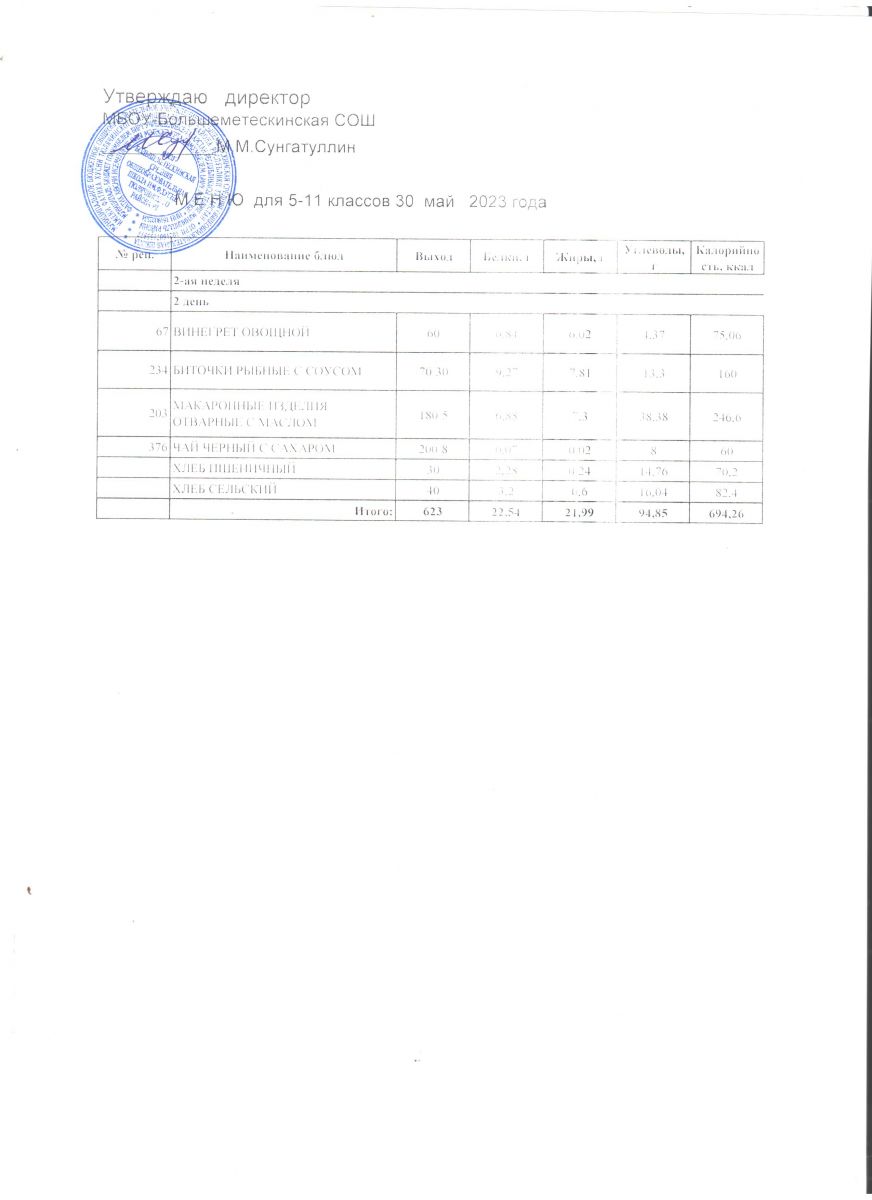 Меню для 5 - 11 классов на 23.05.2022 г.