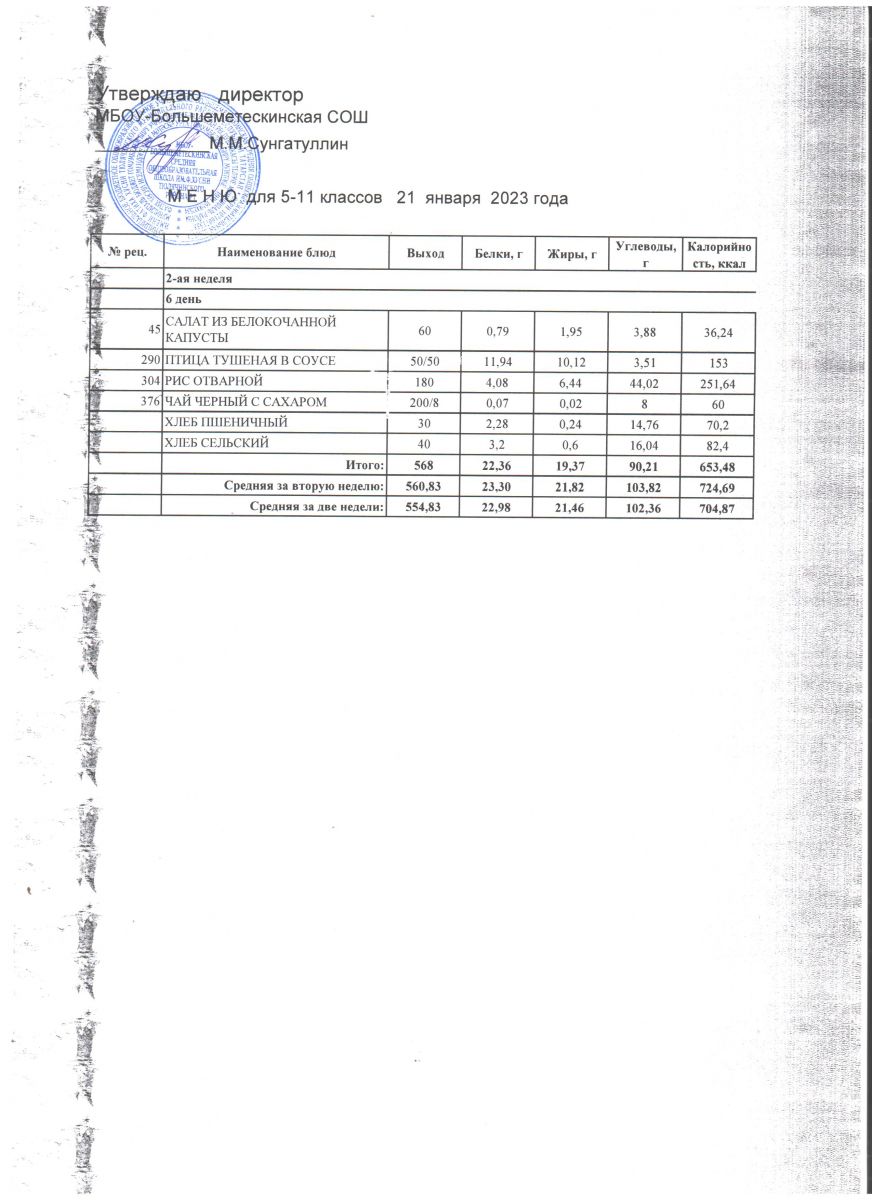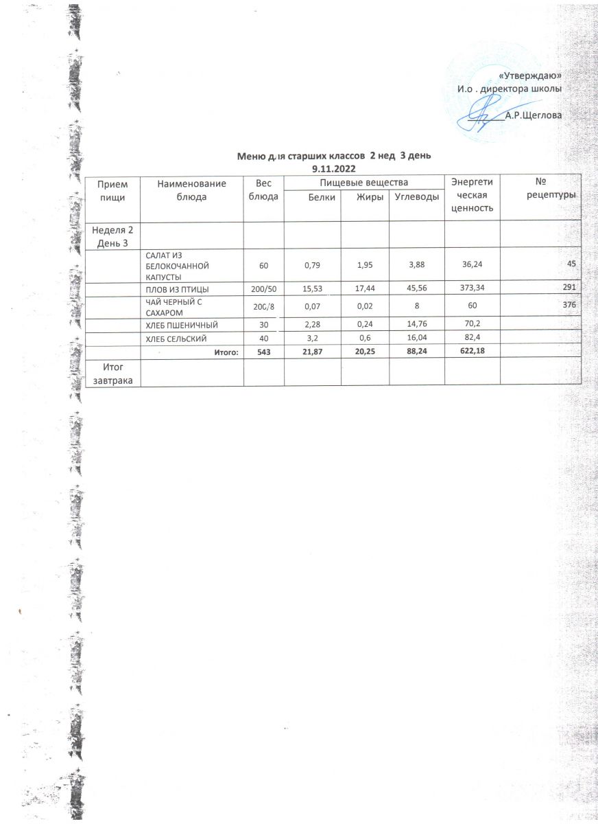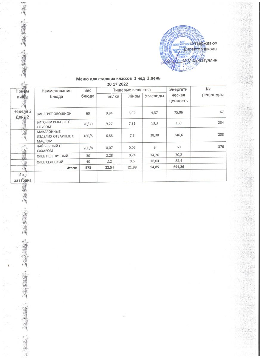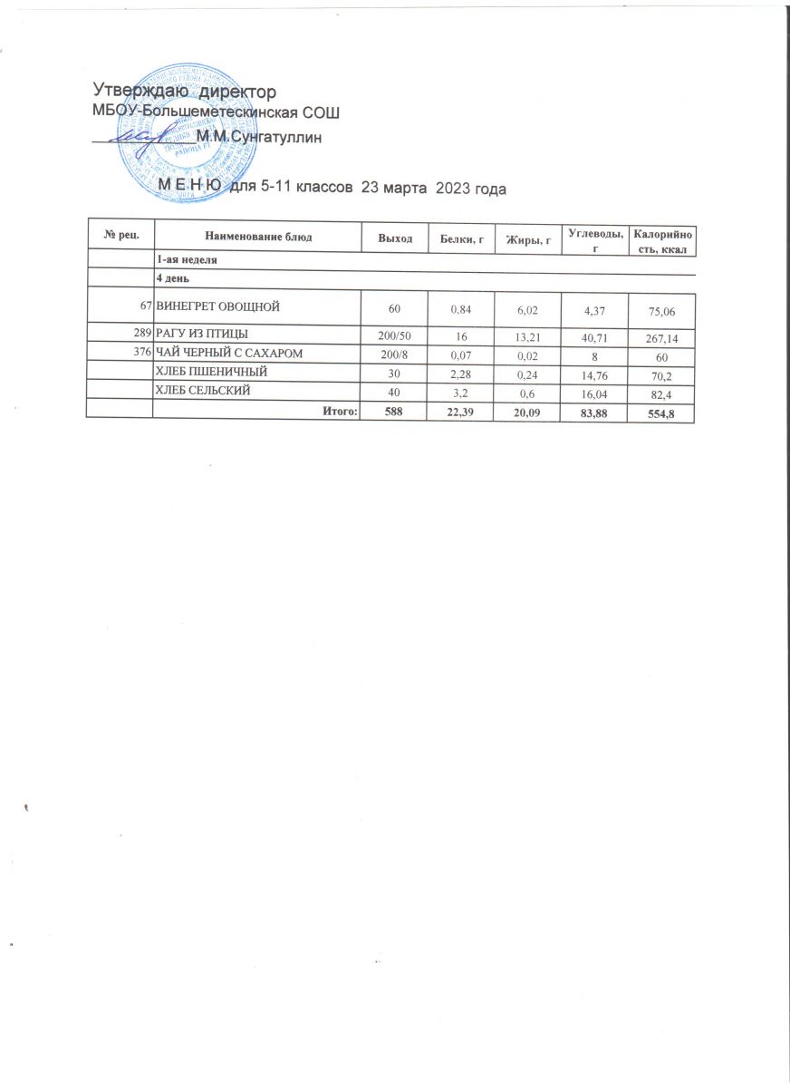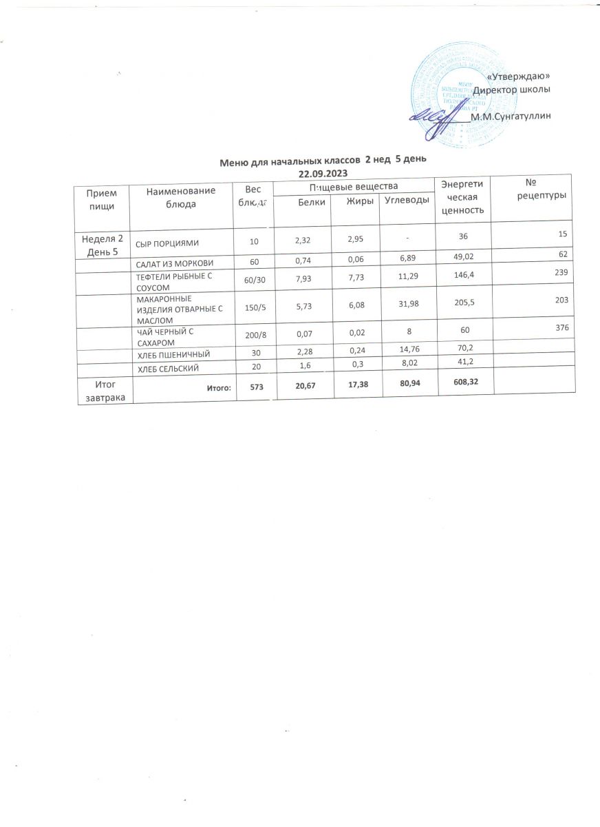 Меню для 5 - 11 классов на 23.05.2022 г.
