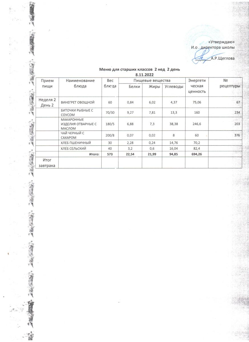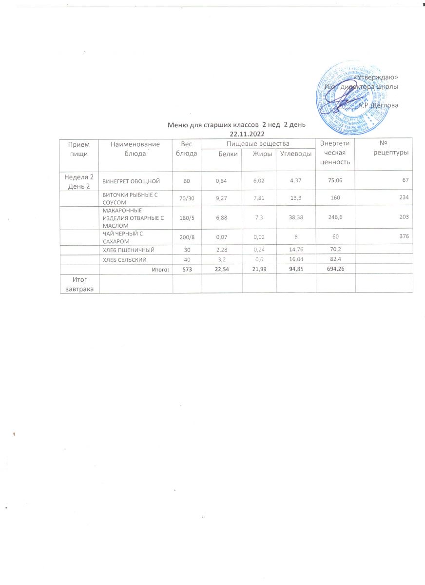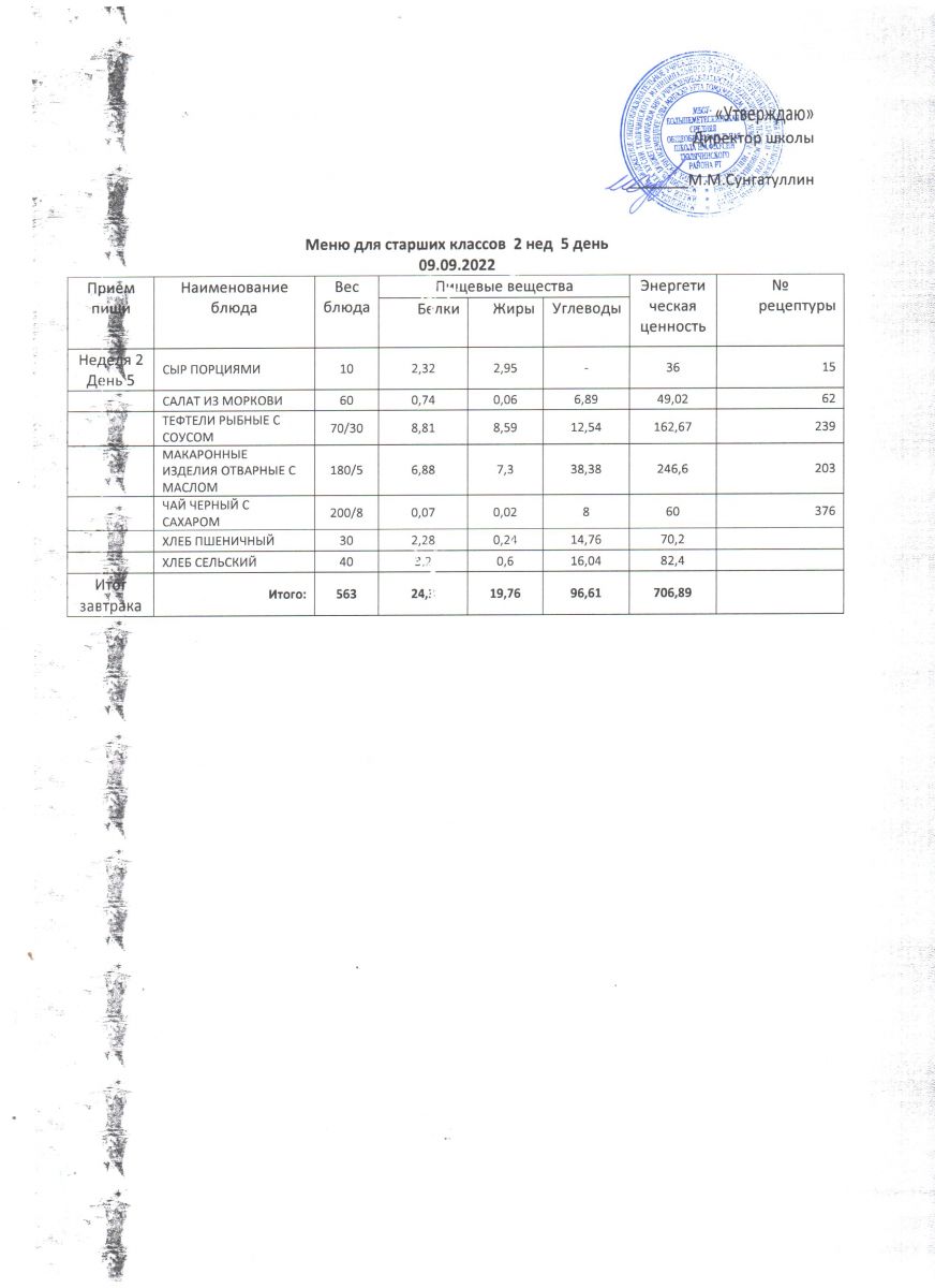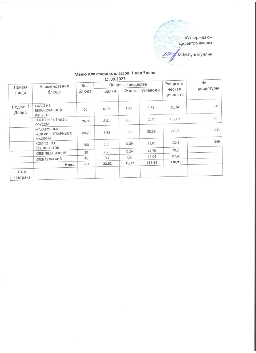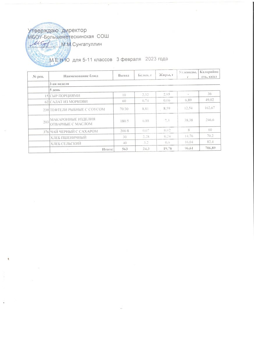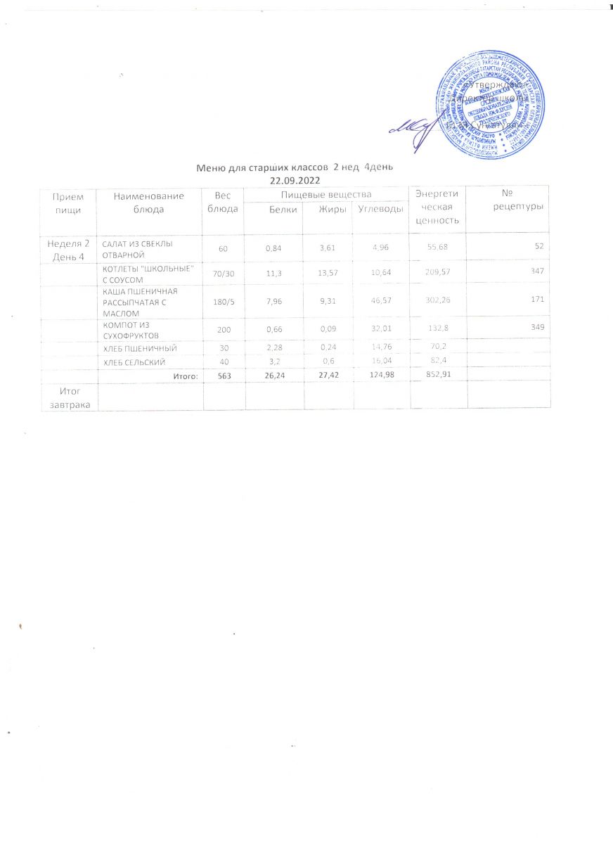 Меню для 5 - 11 классов на 23.05.2022 г.