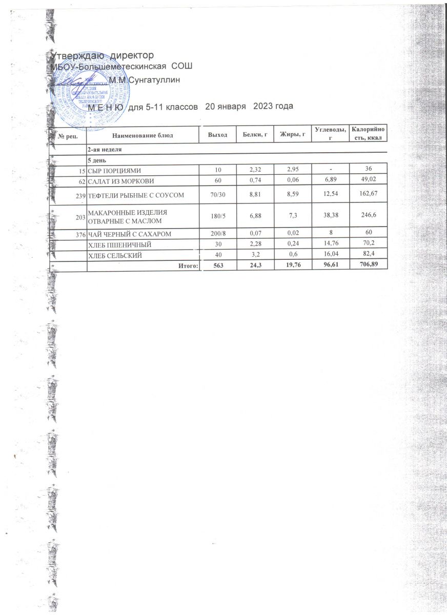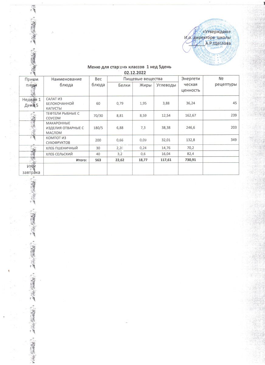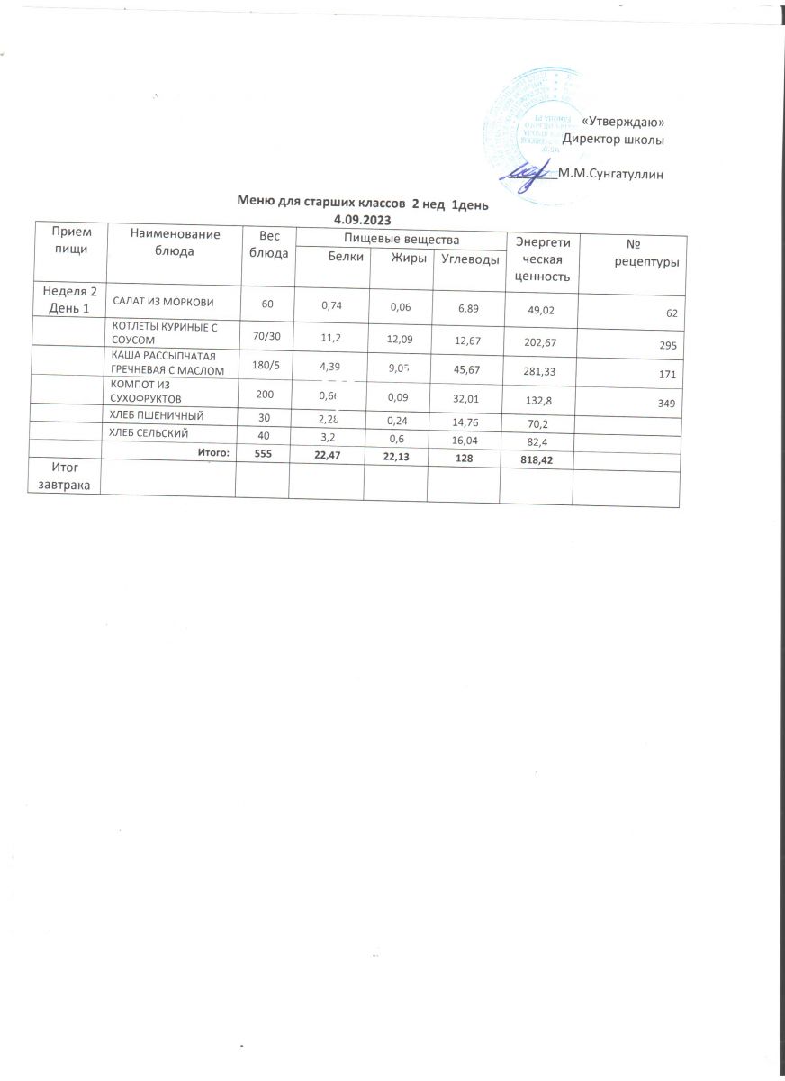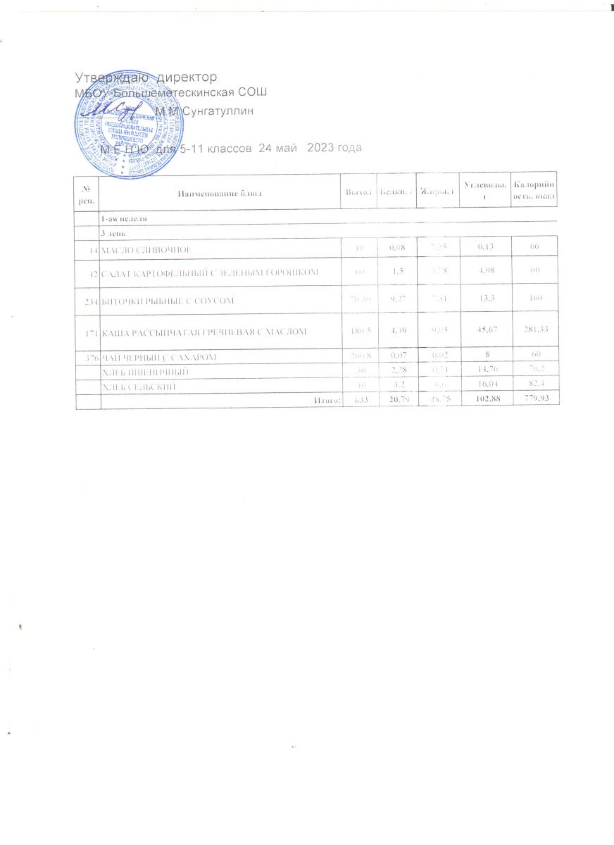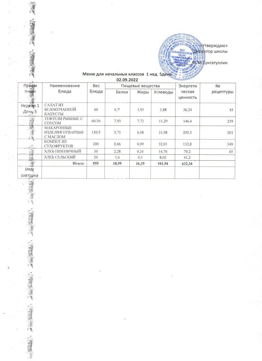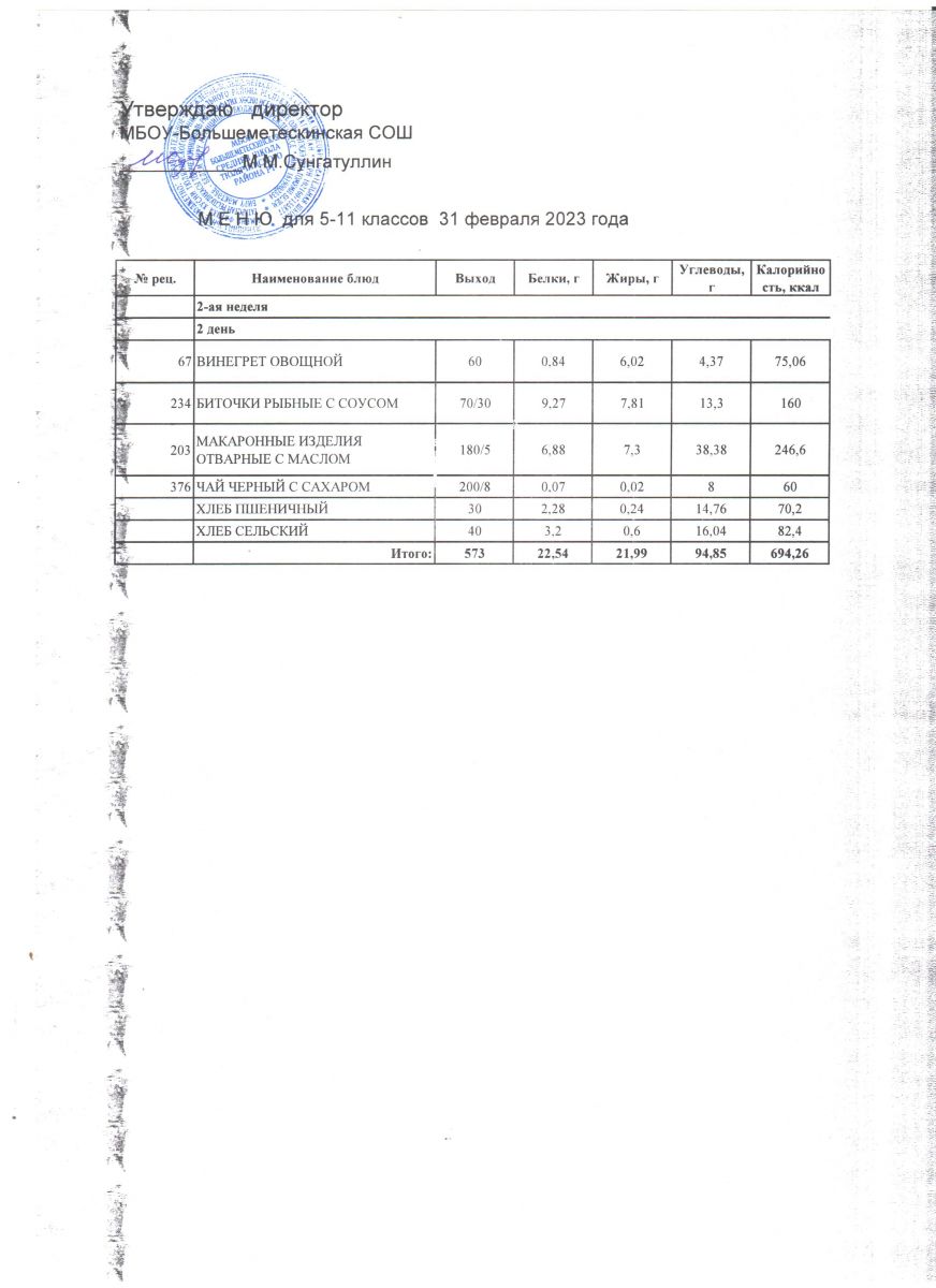 Меню для 5 - 11 классов на 23.05.2022 г.