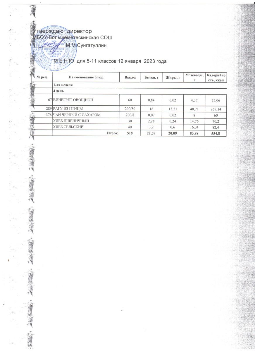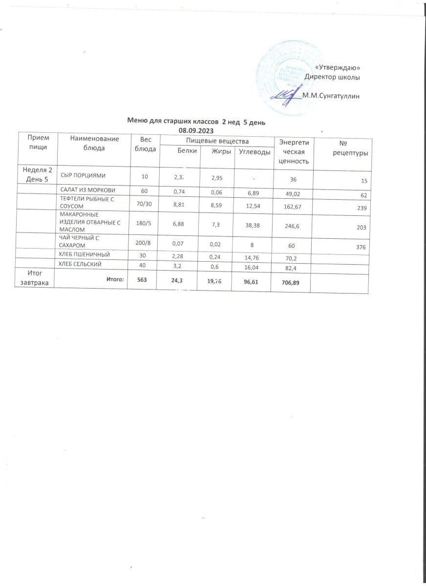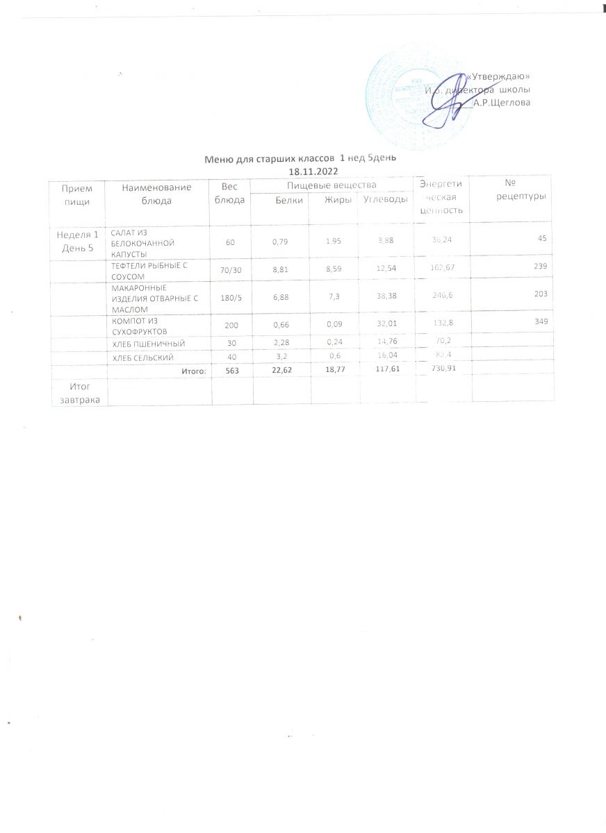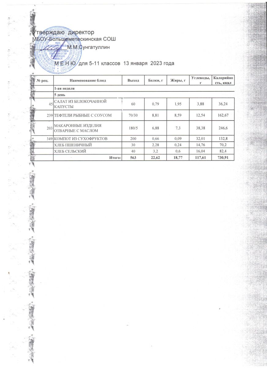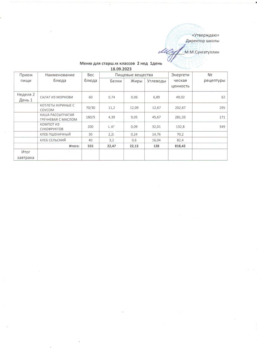 Меню для 5 - 11 классов на 23.05.2022 г.