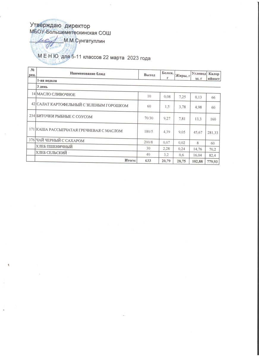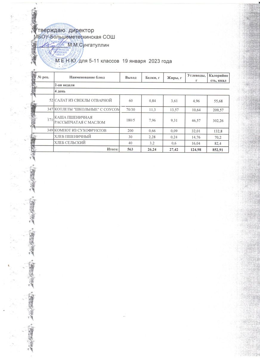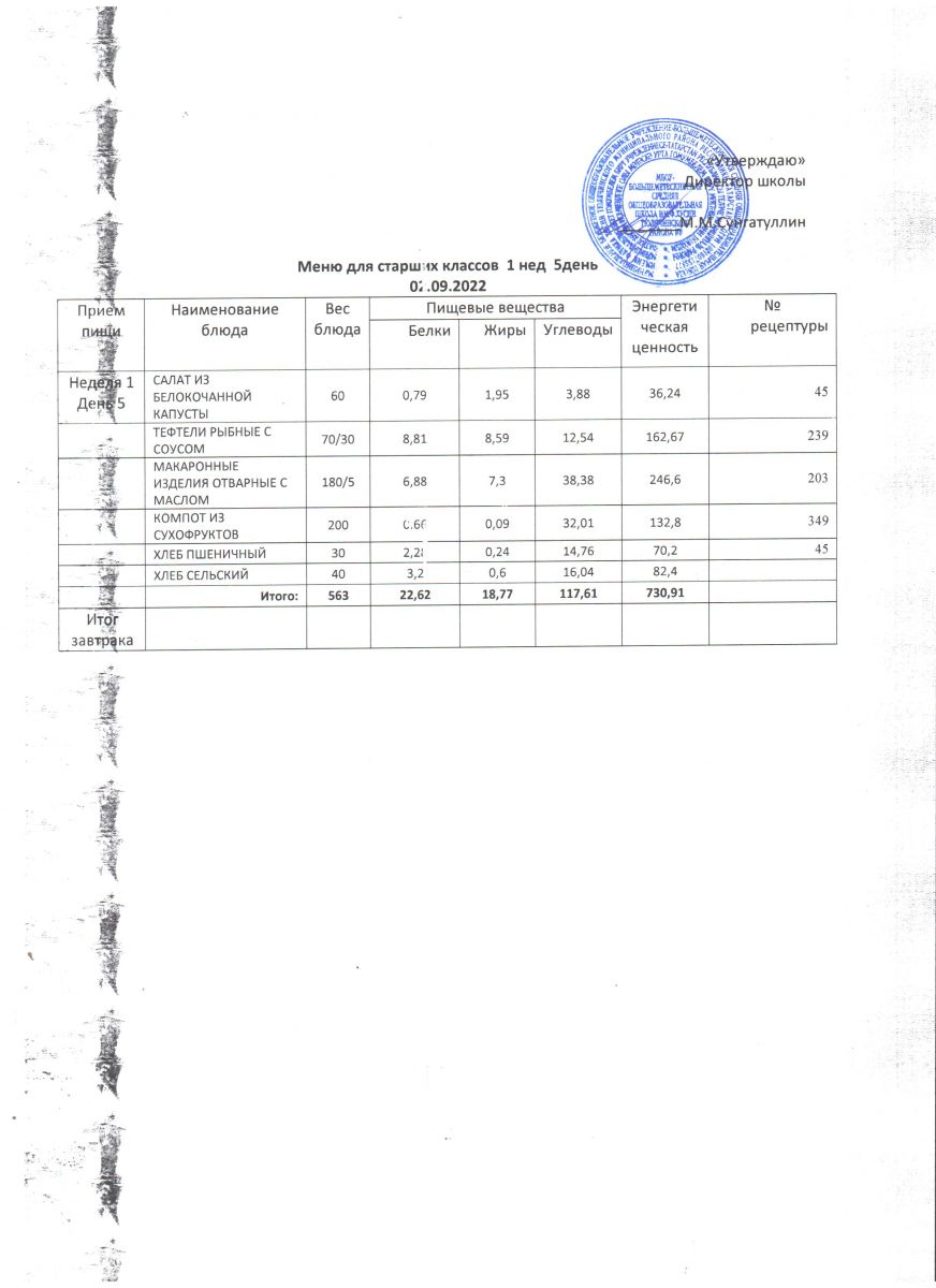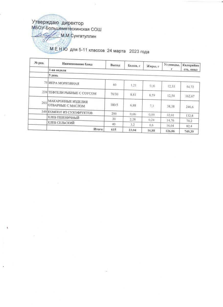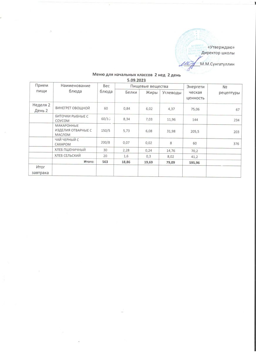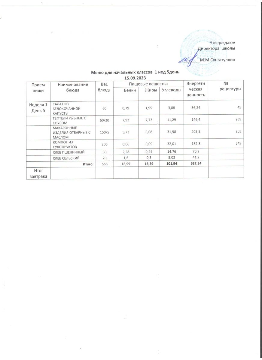 Меню для 5 - 11 классов на 23.05.2022 г.