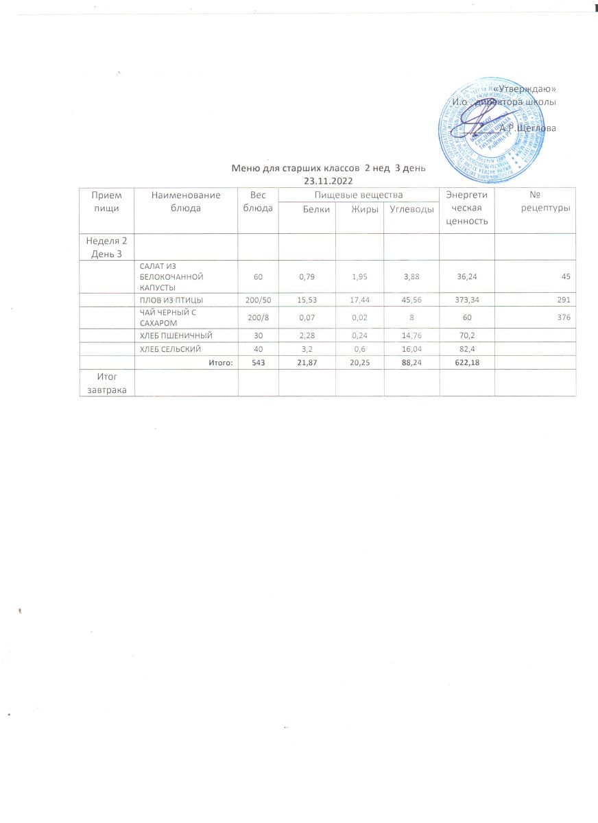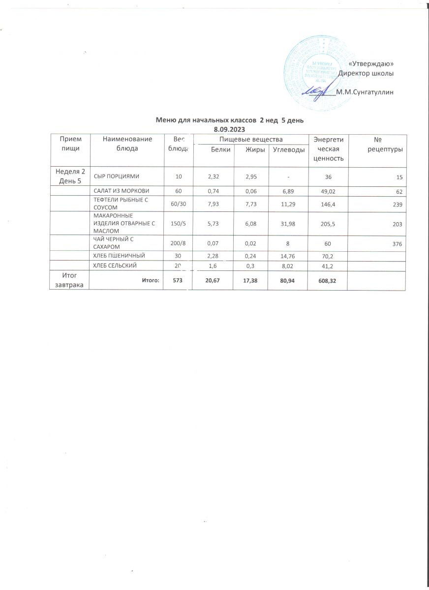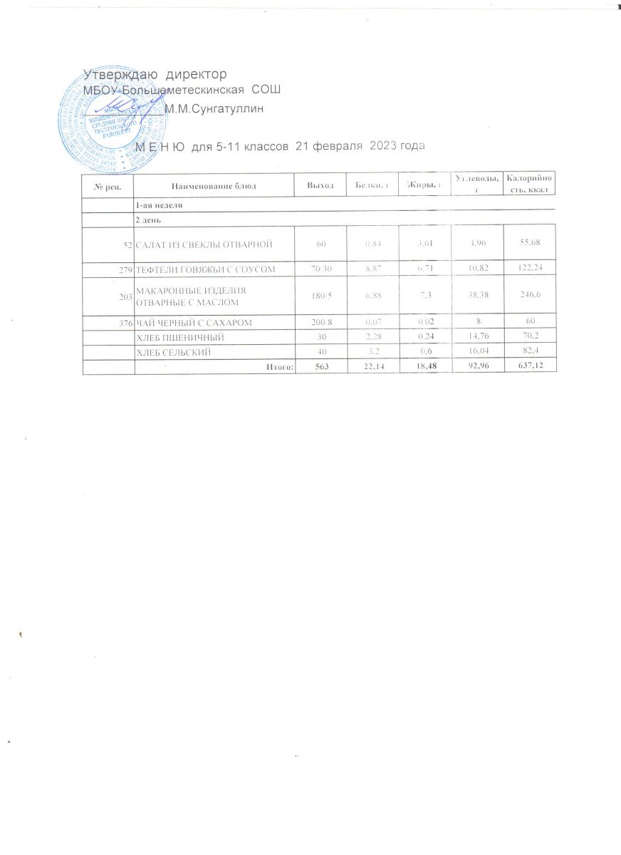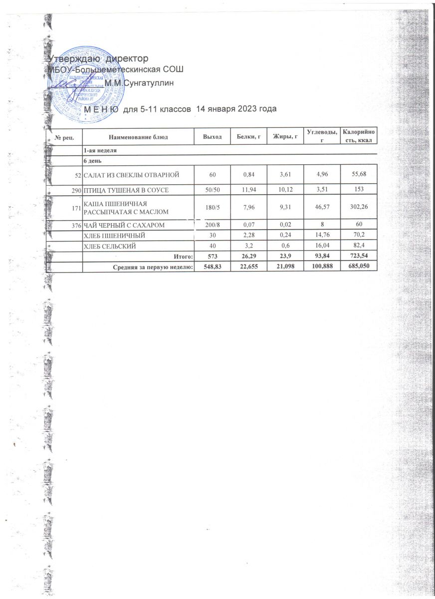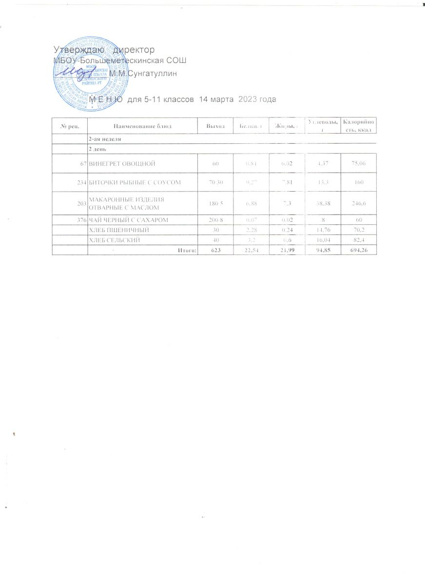 Меню для 5 - 11 классов на 23.05.2022 г.
