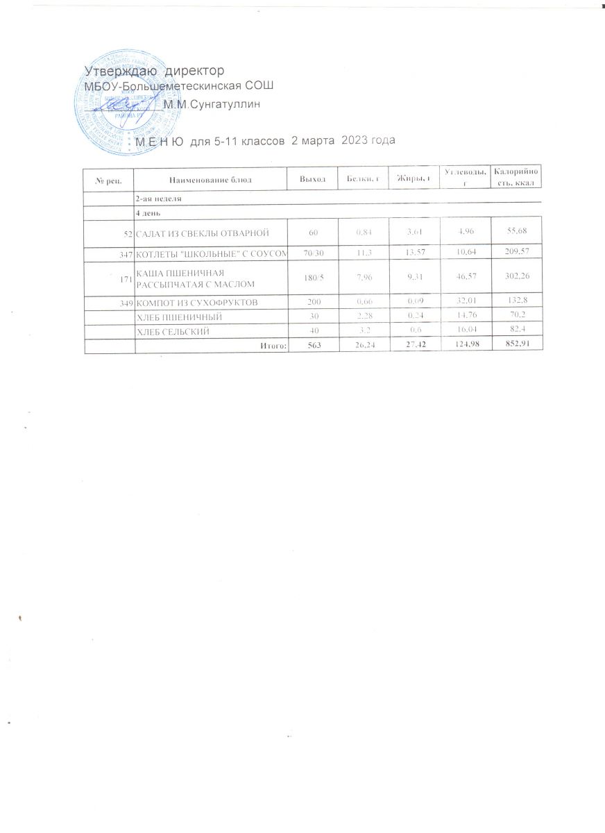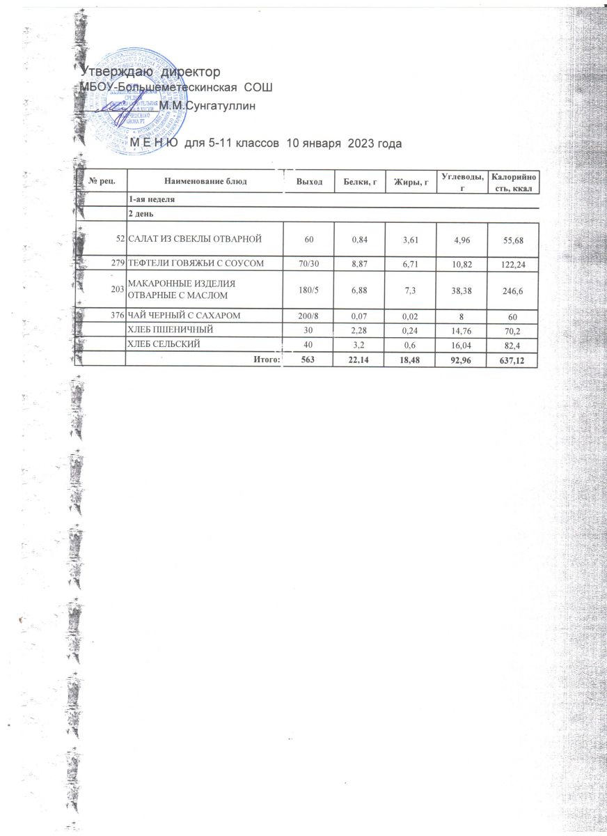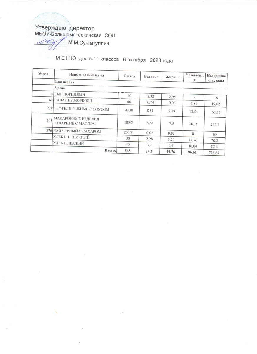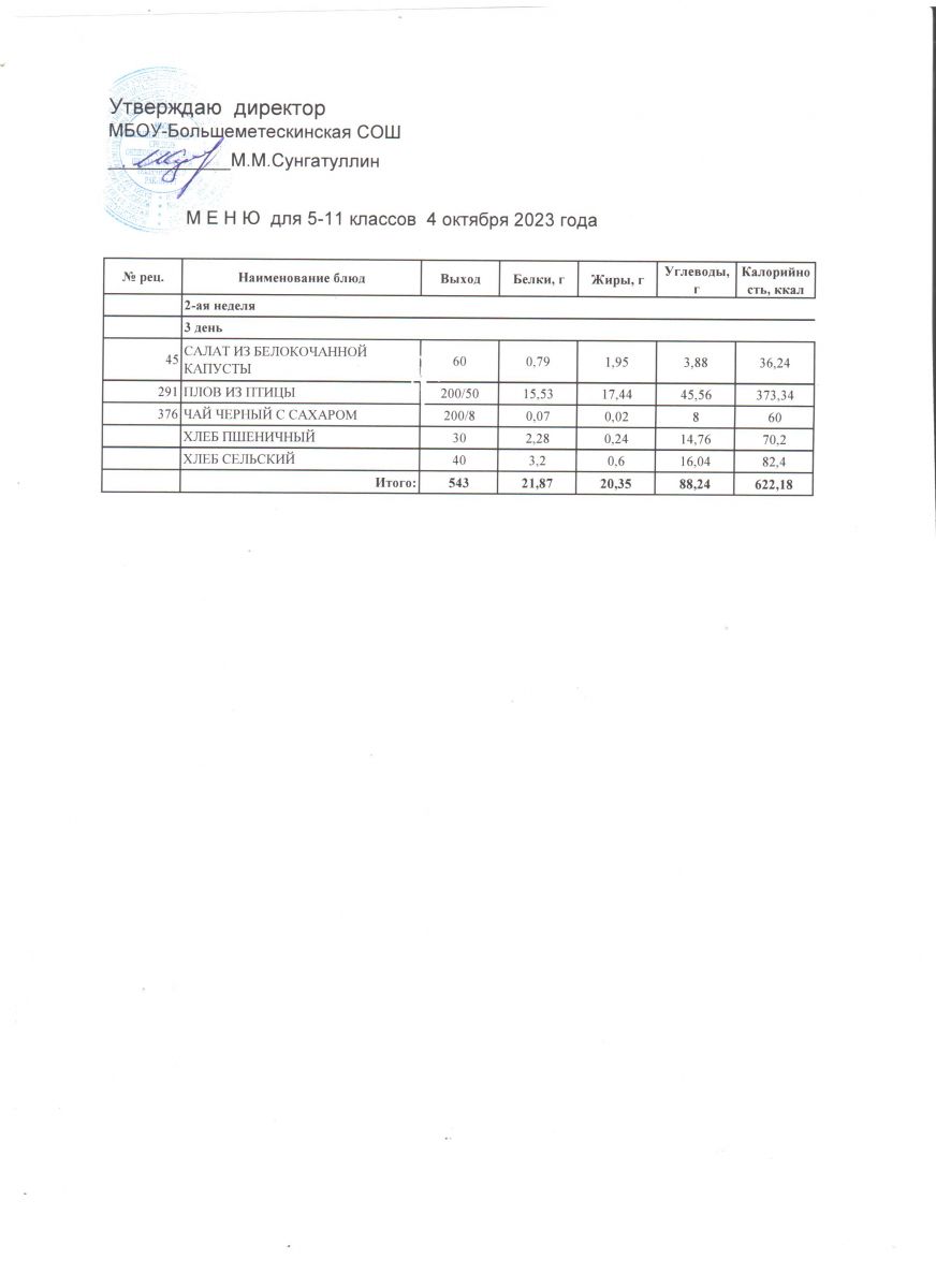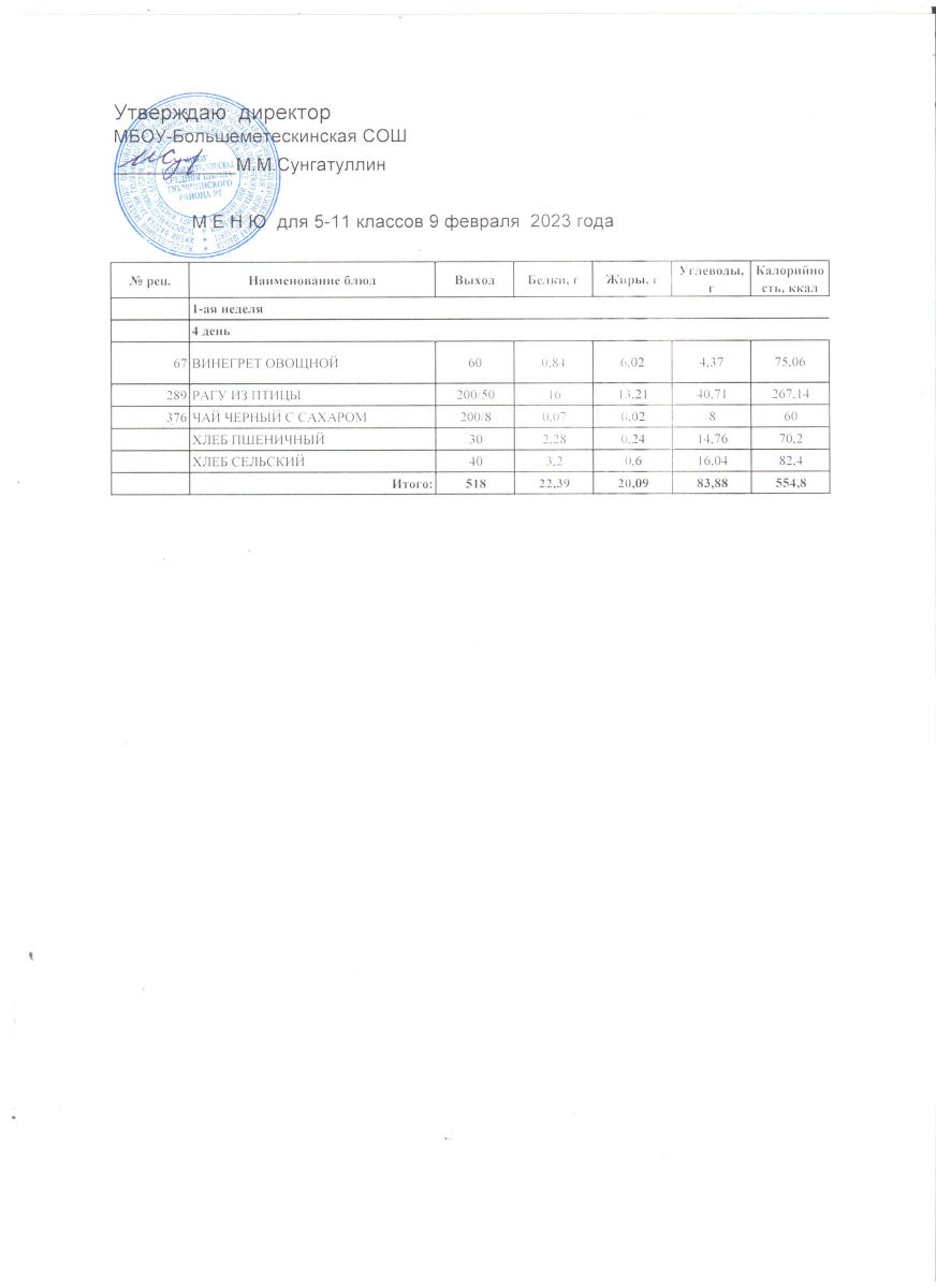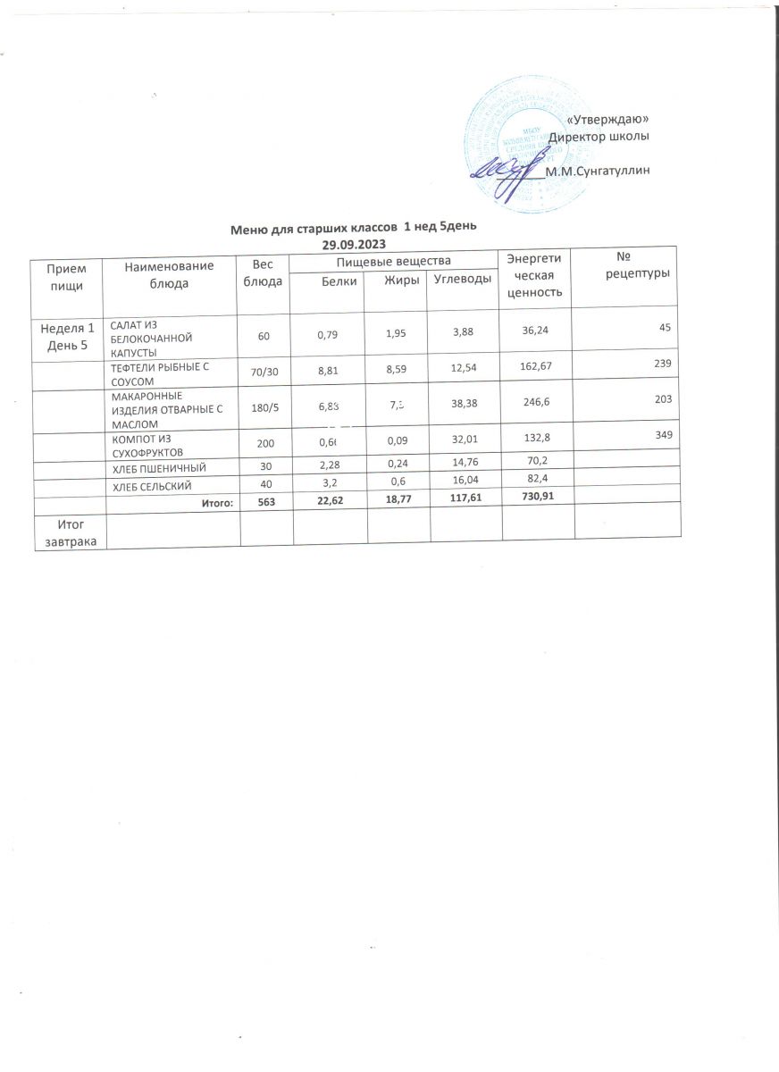 Меню для 5 - 11 классов на 23.05.2022 г.