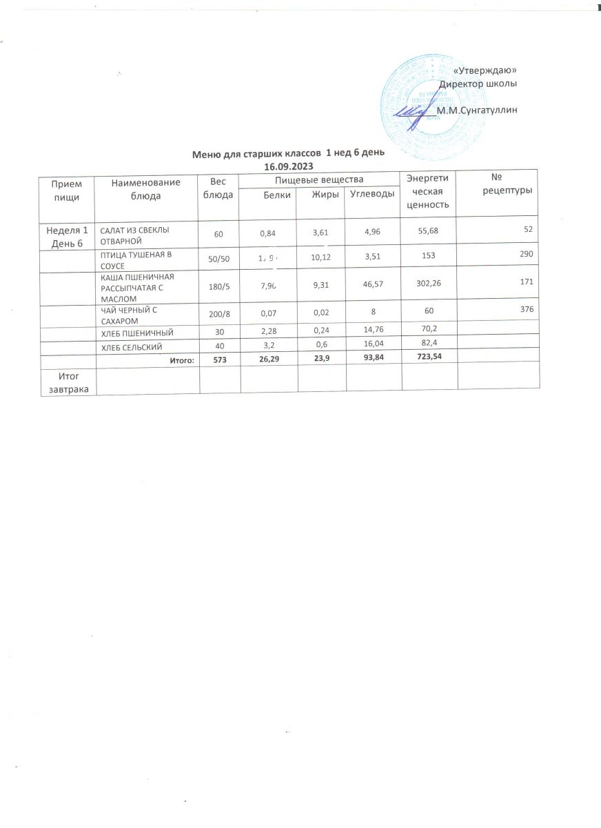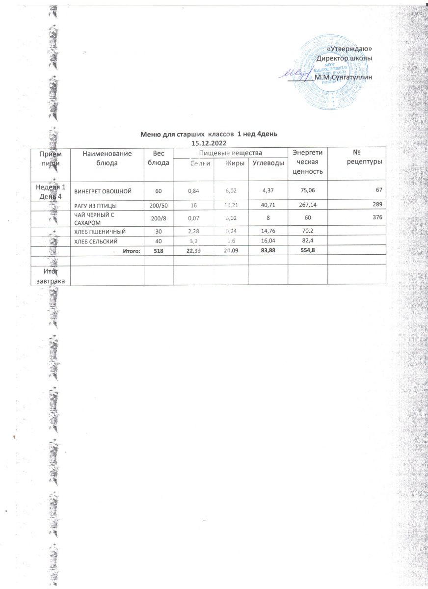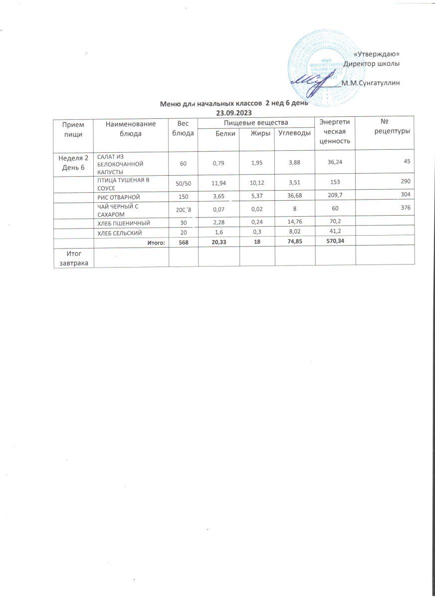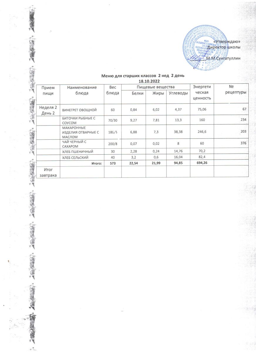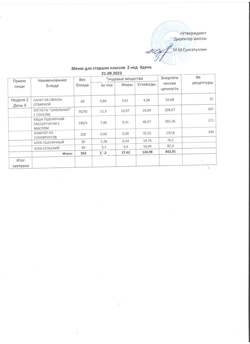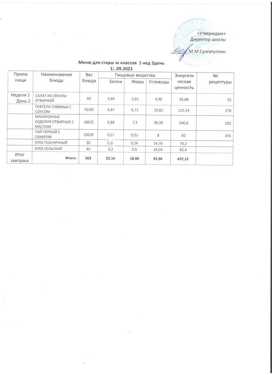 Меню для 5 - 11 классов на 23.05.2022 г.