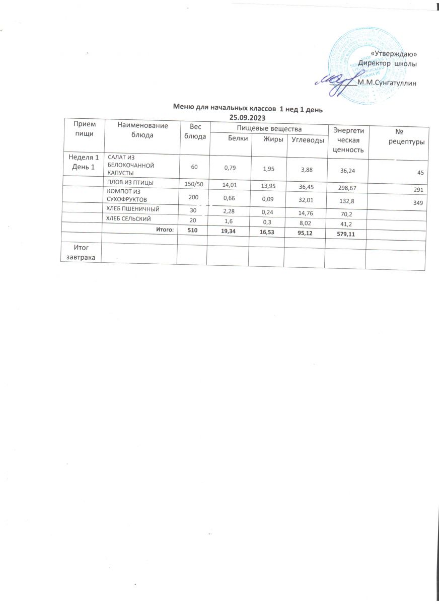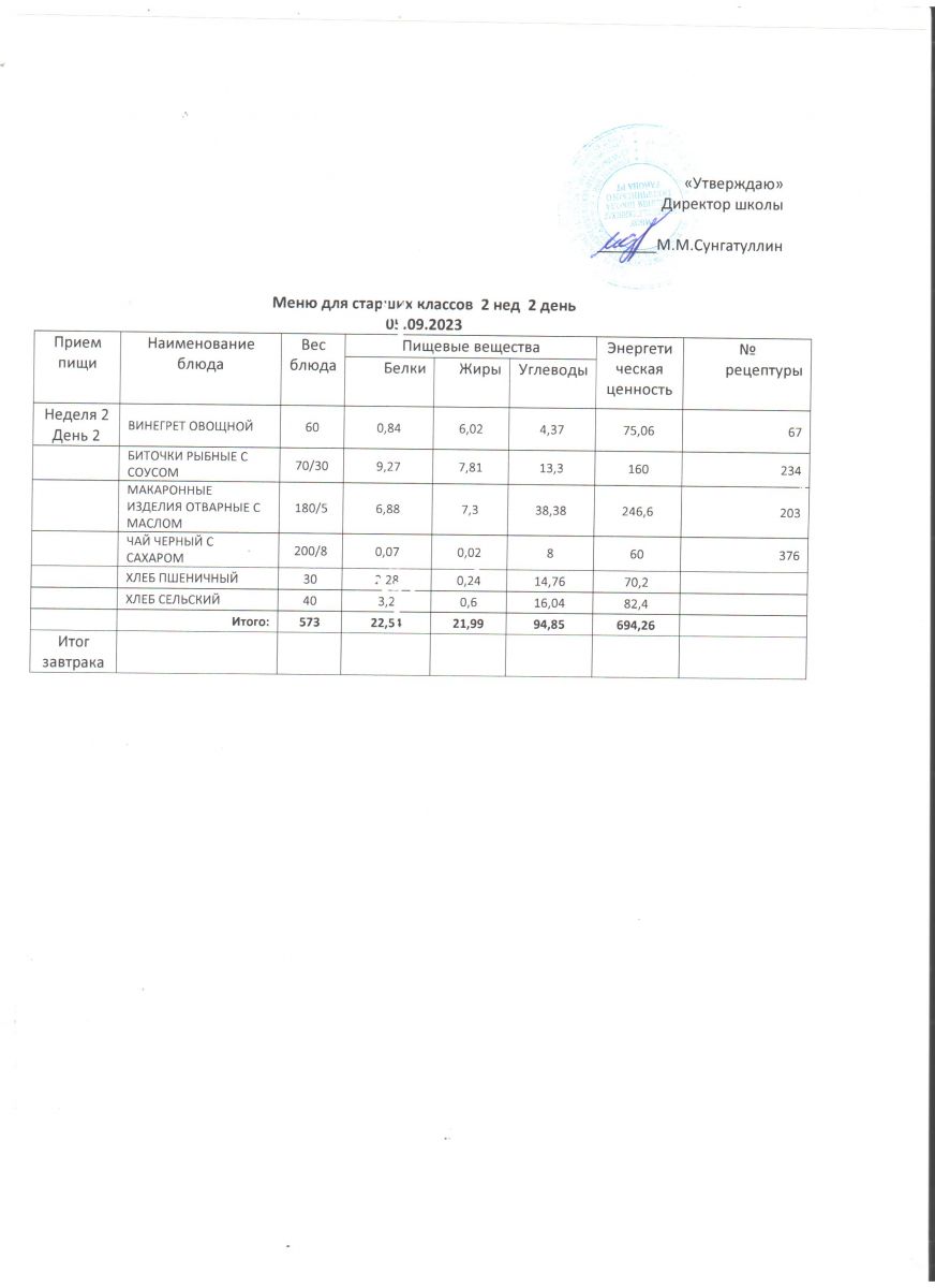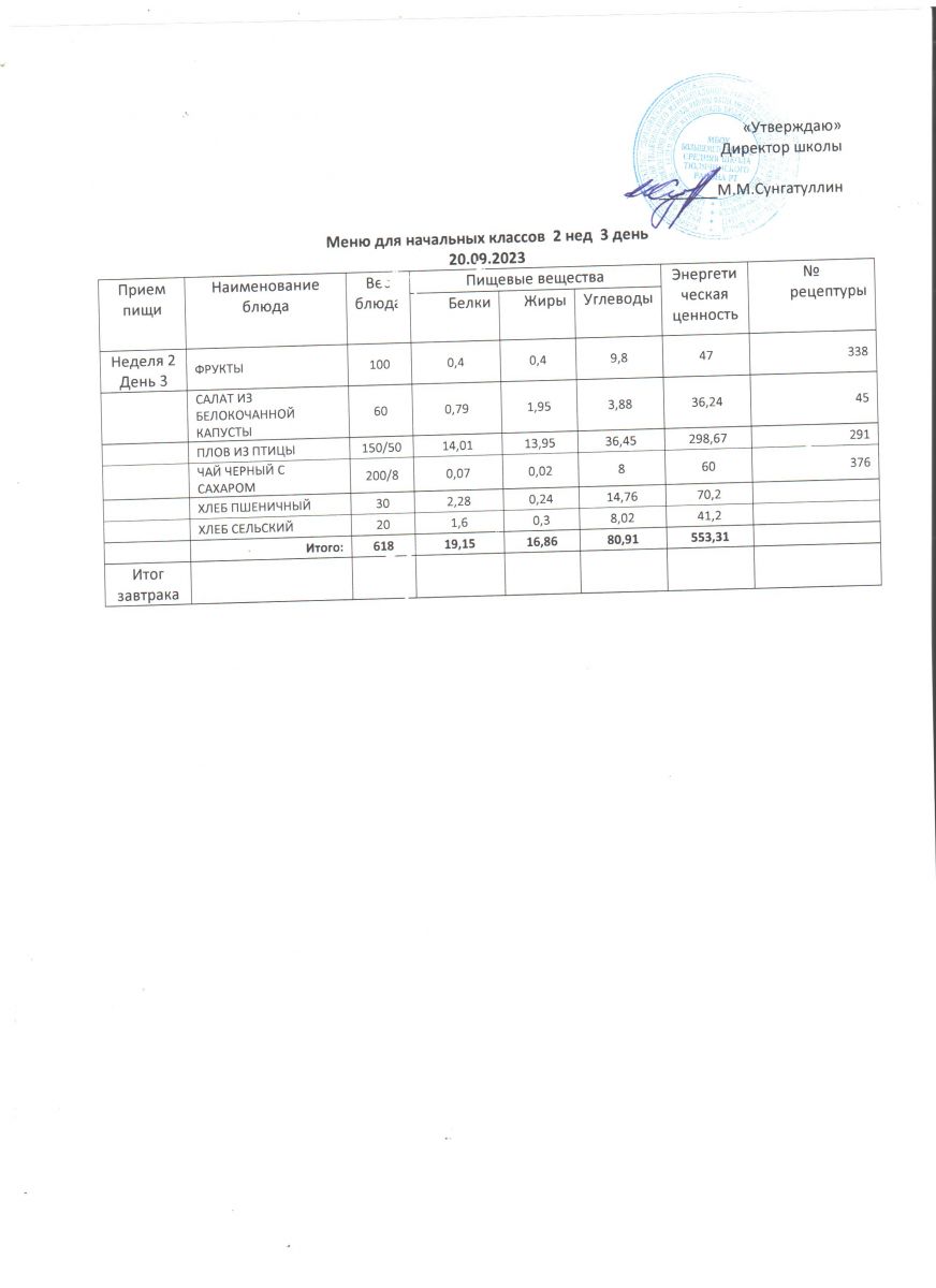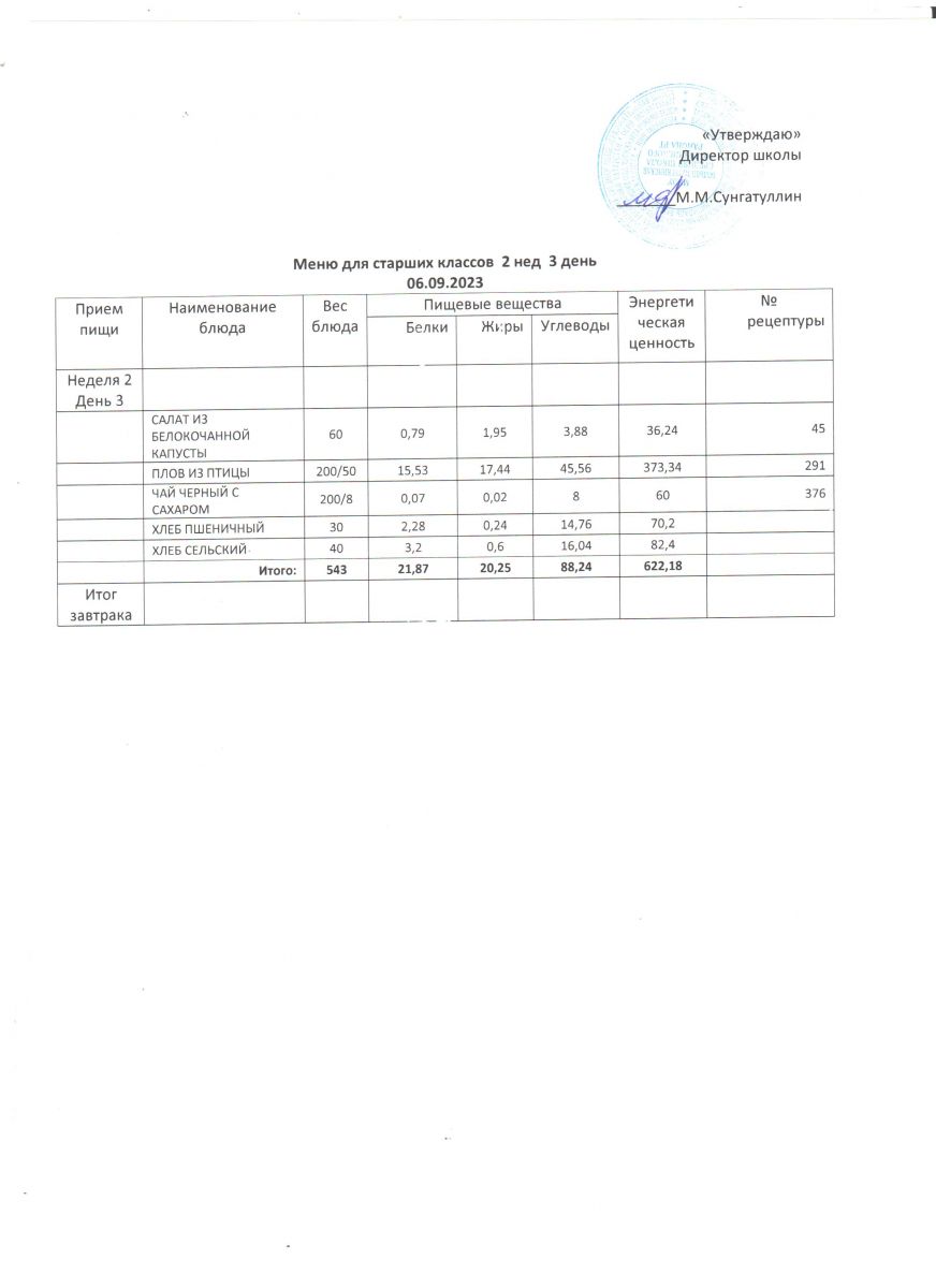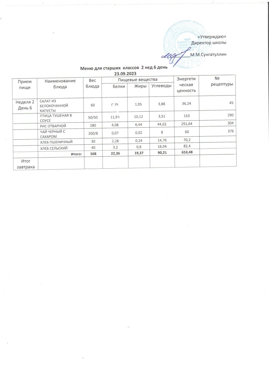 Меню для 5 - 11 классов на 23.05.2022 г.