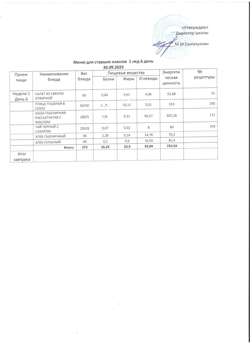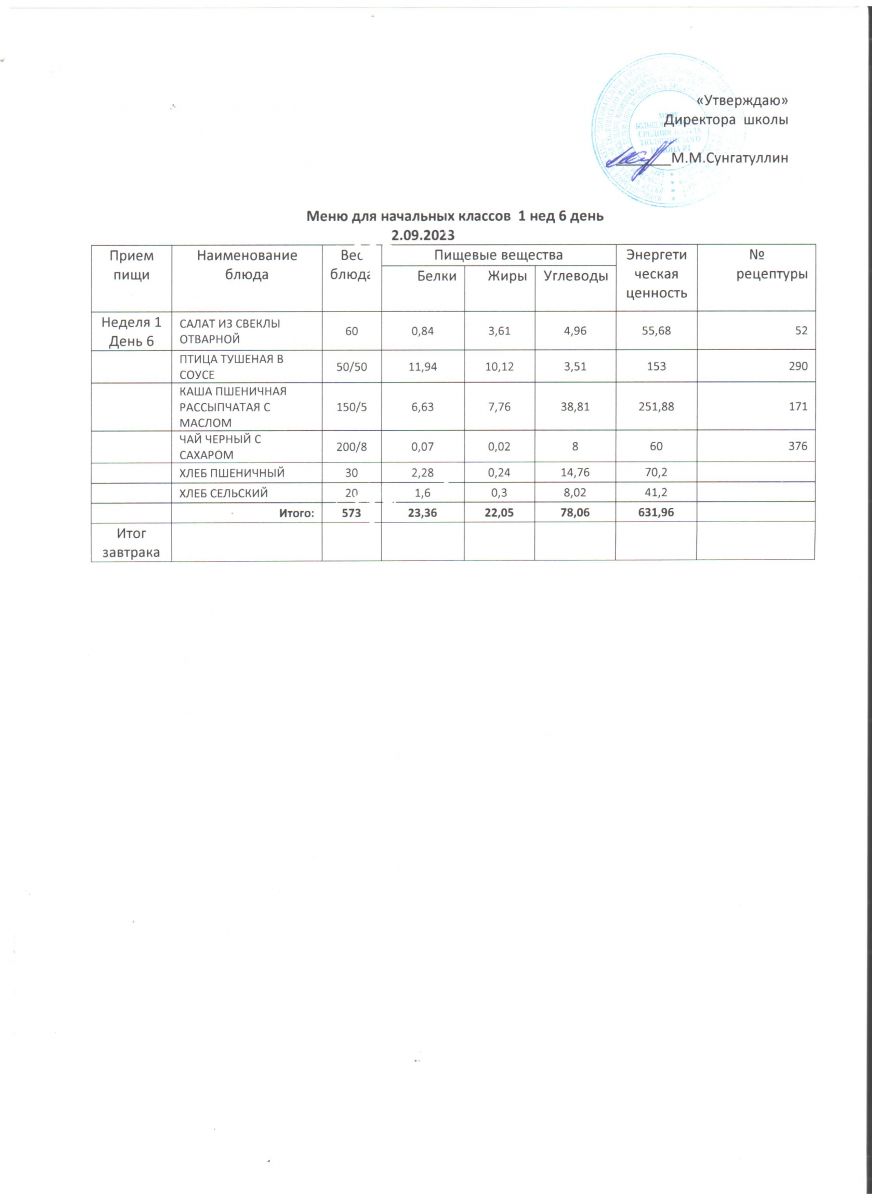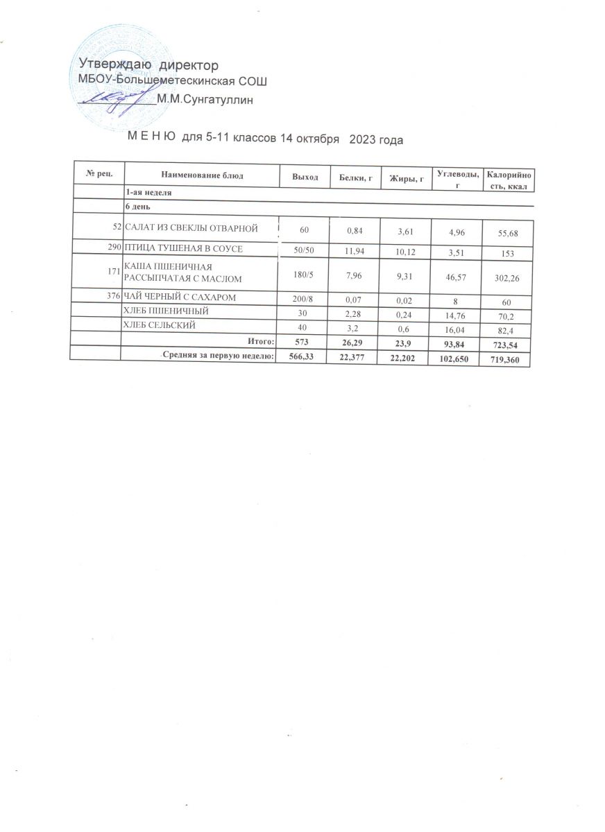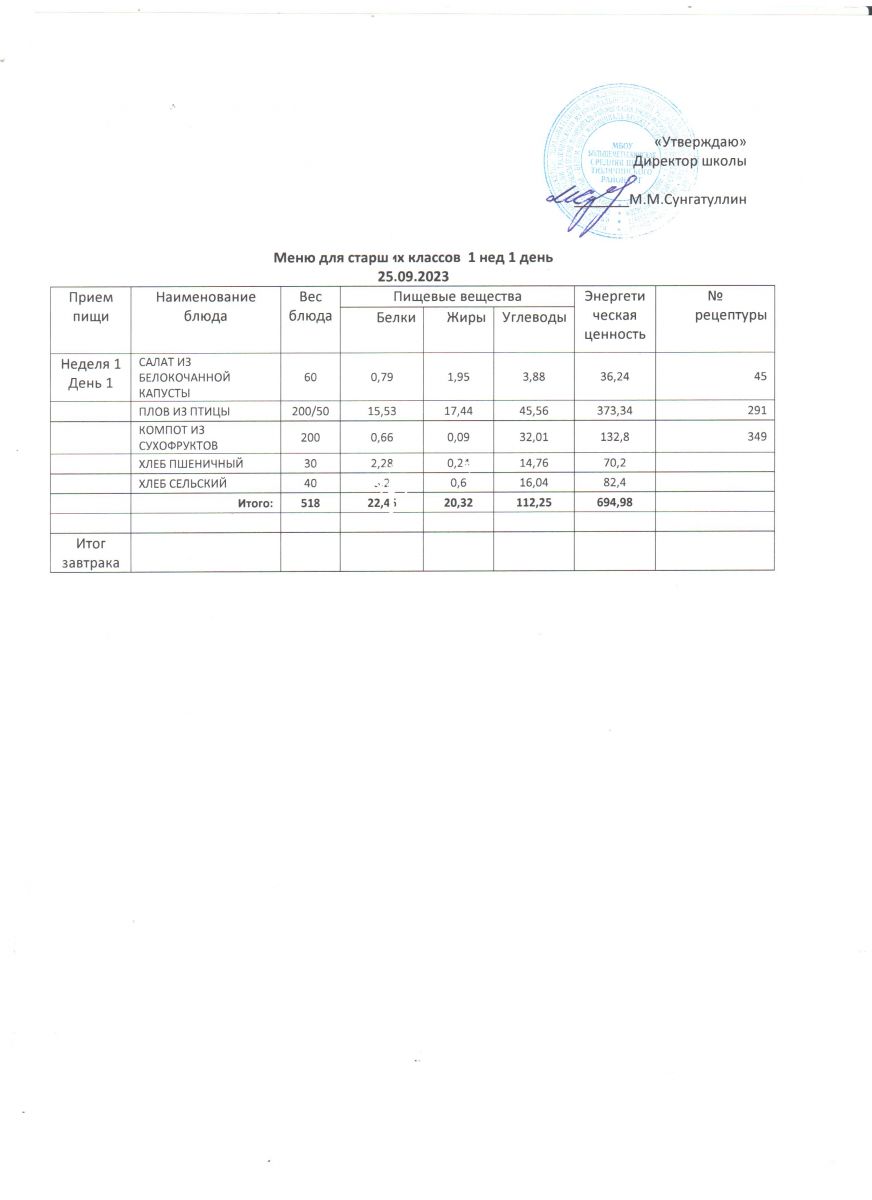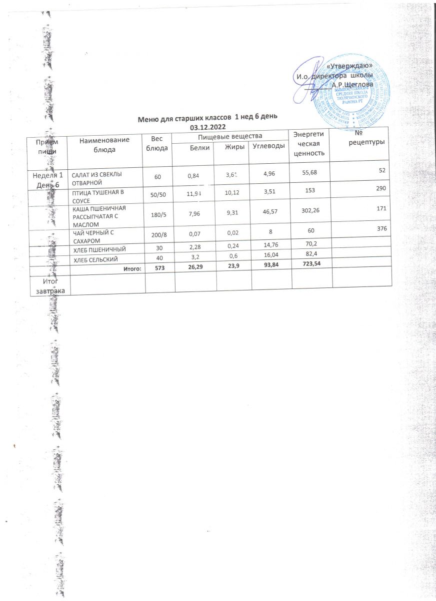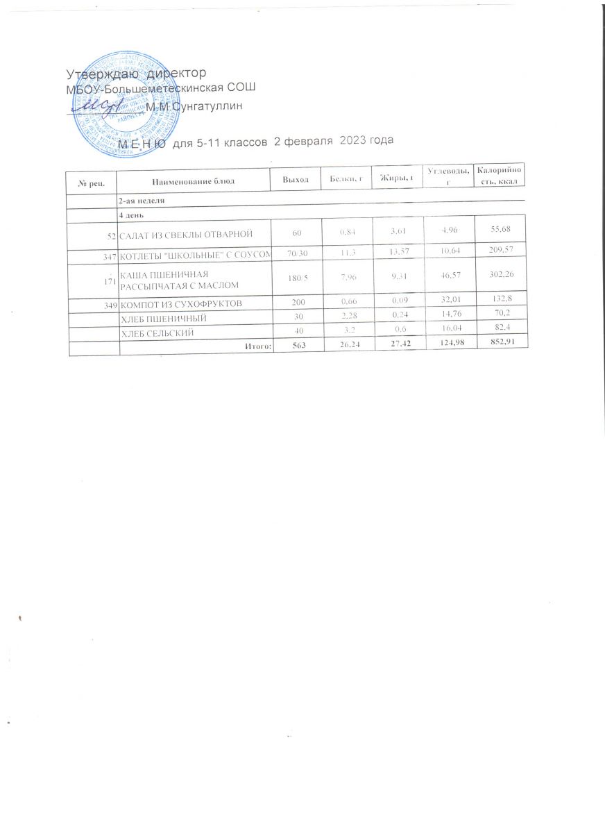 Меню для 5 - 11 классов на 23.05.2022 г.