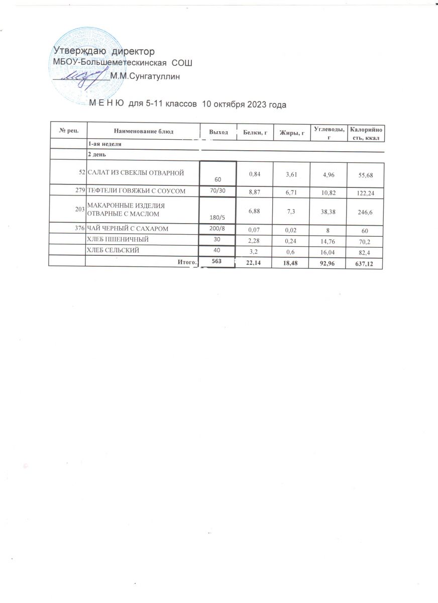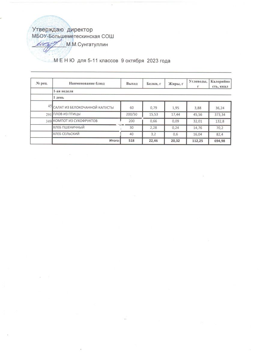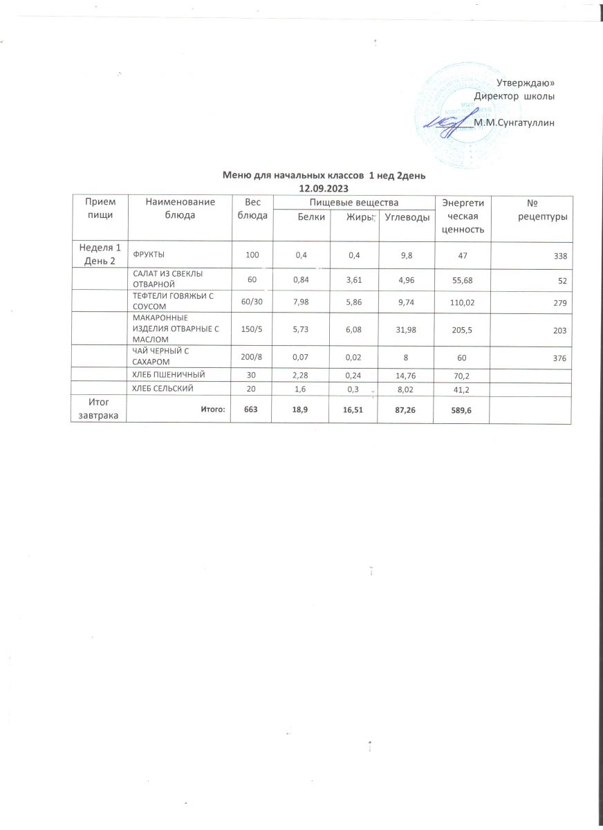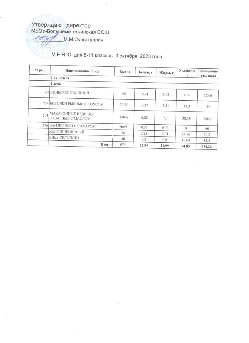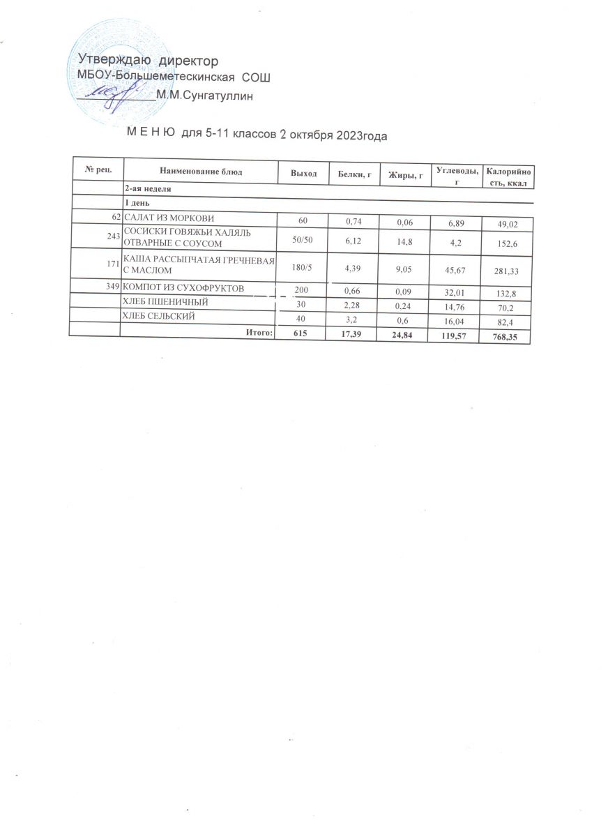 Меню для 5 - 11 классов на 23.05.2022 г.