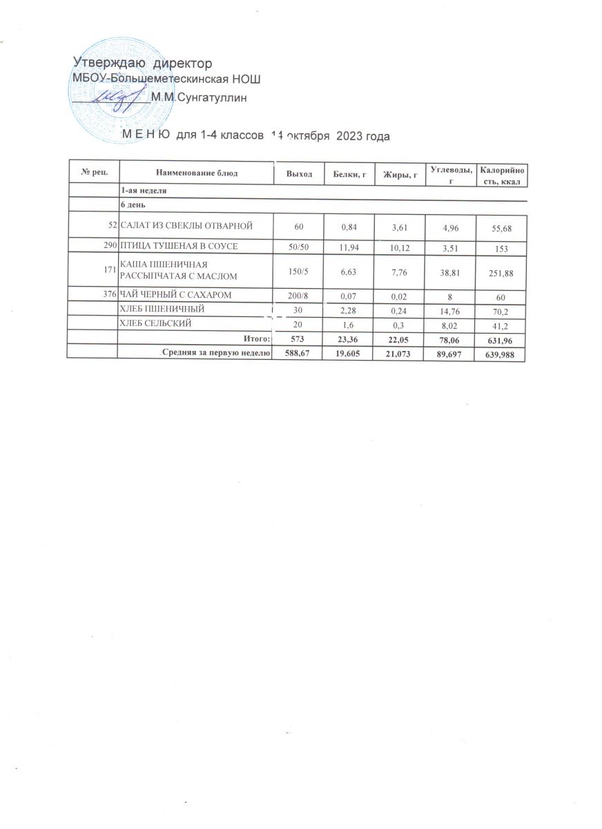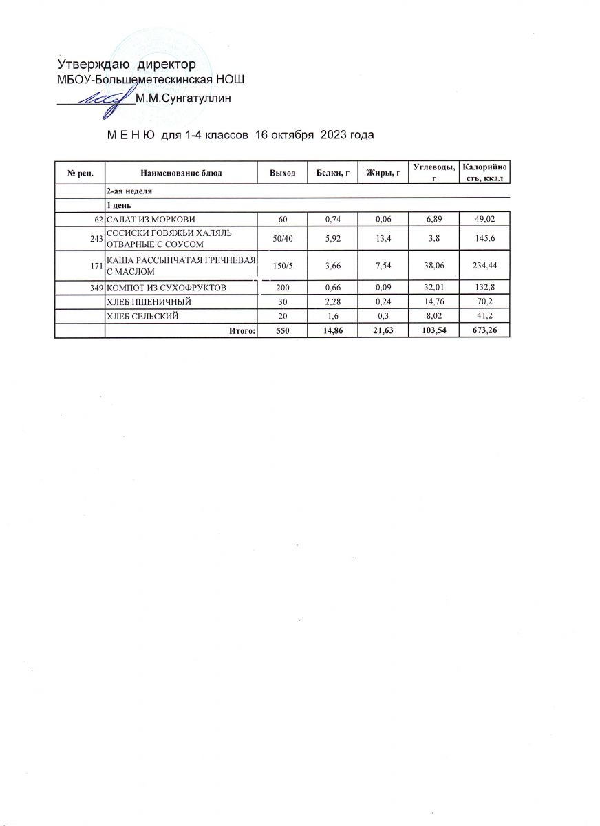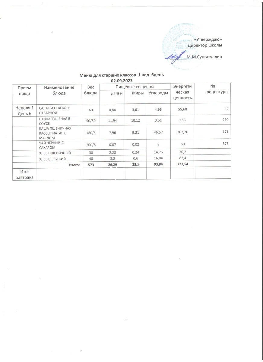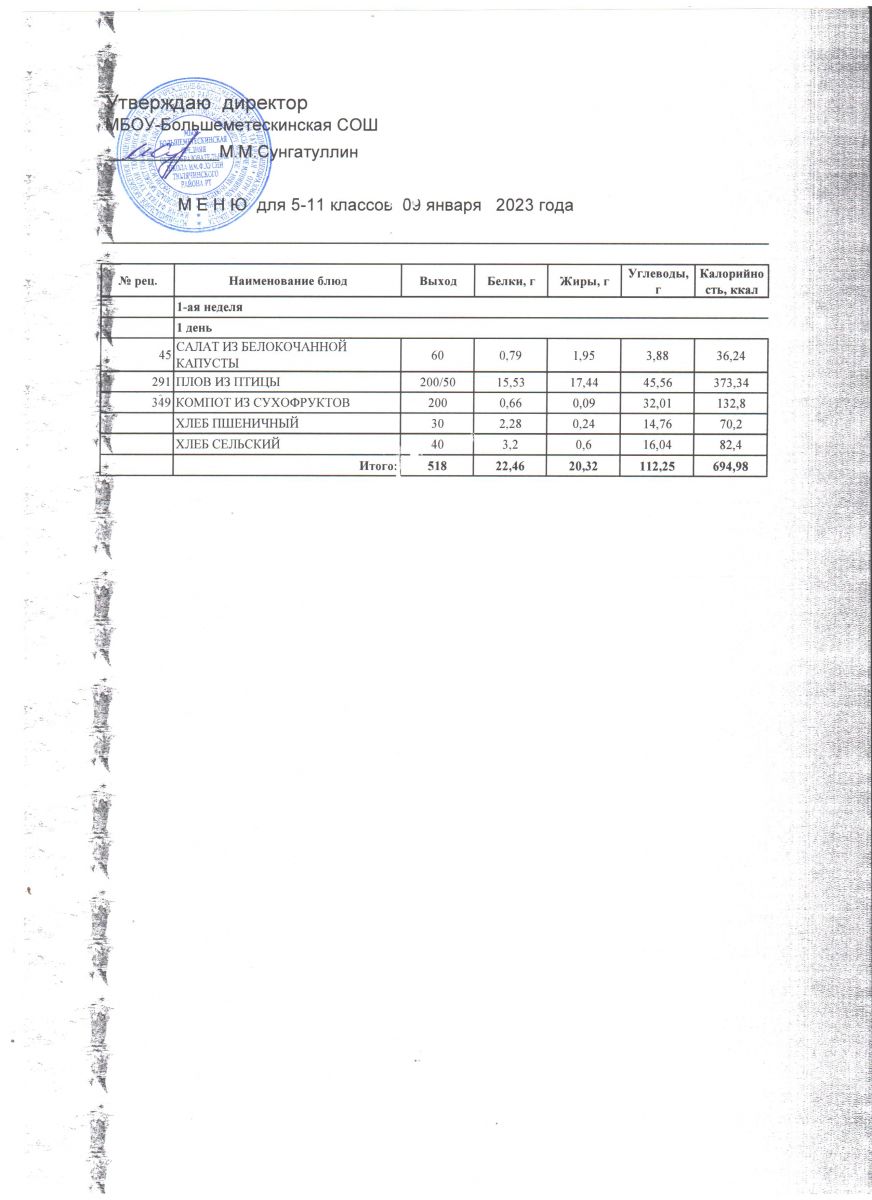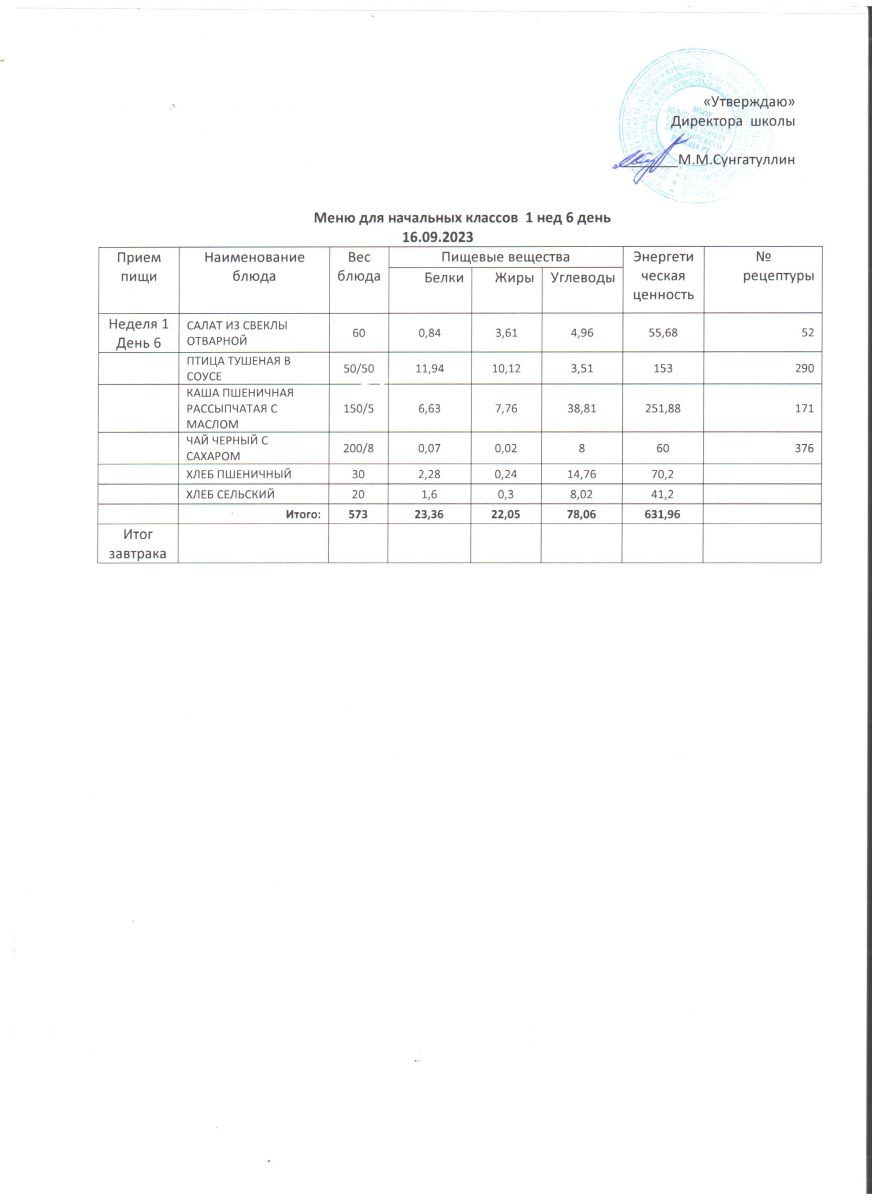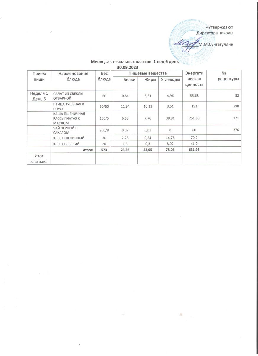 Меню для 5 - 11 классов на 23.05.2022 г.