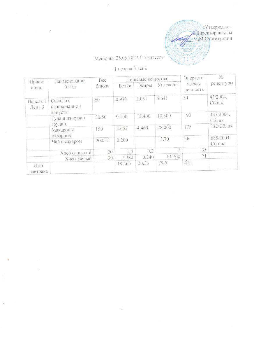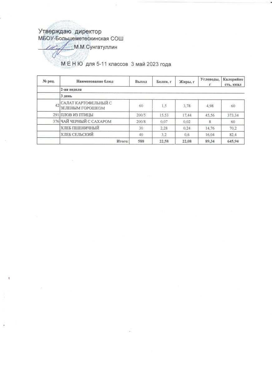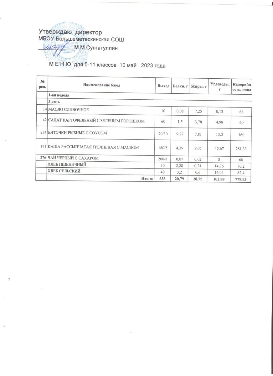 Меню для 5 - 11 классов на 03.05.2022 г.