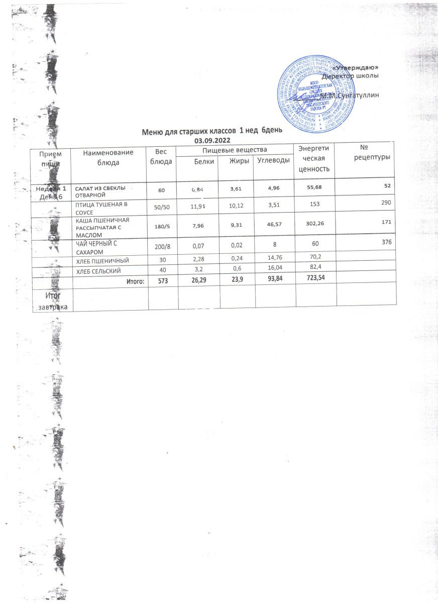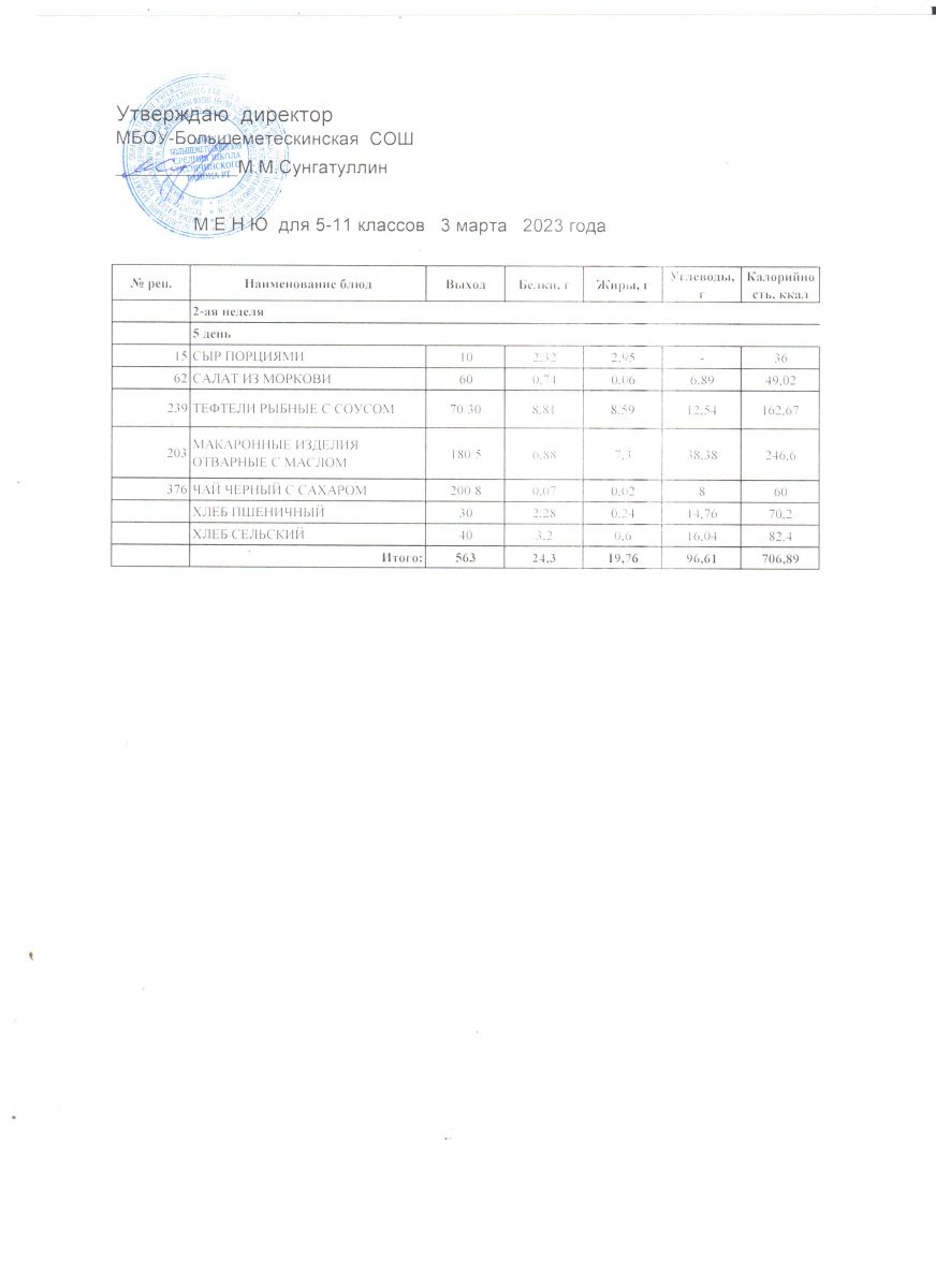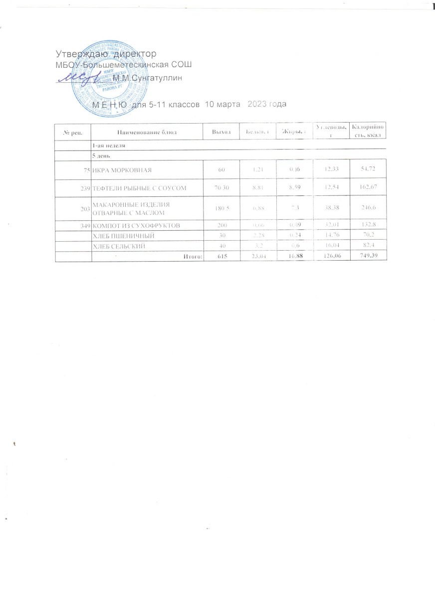 Меню для 5 - 11 классов на 03.05.2022 г.