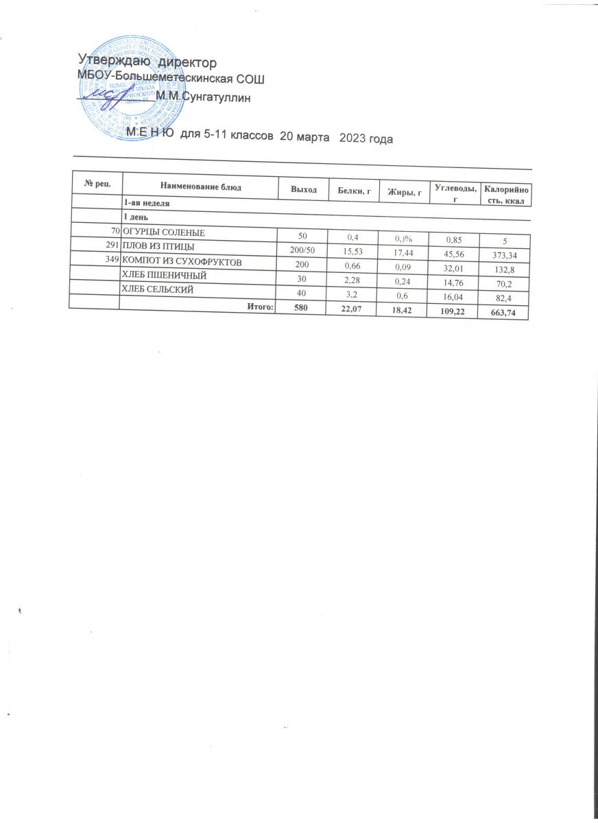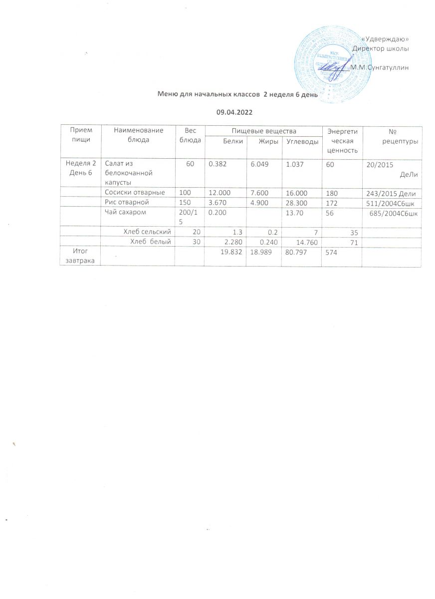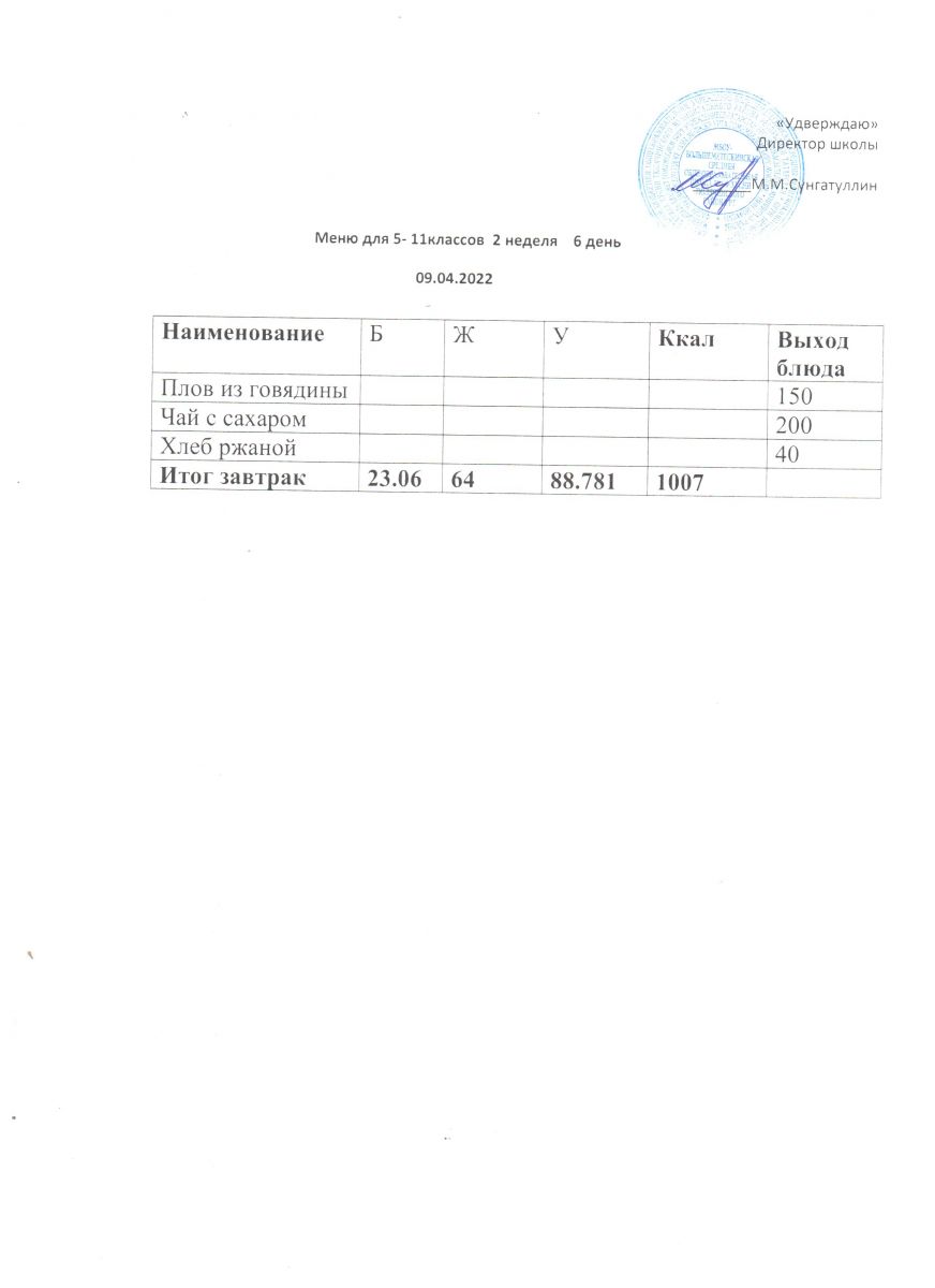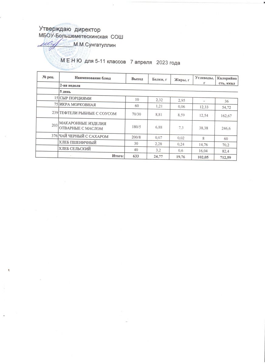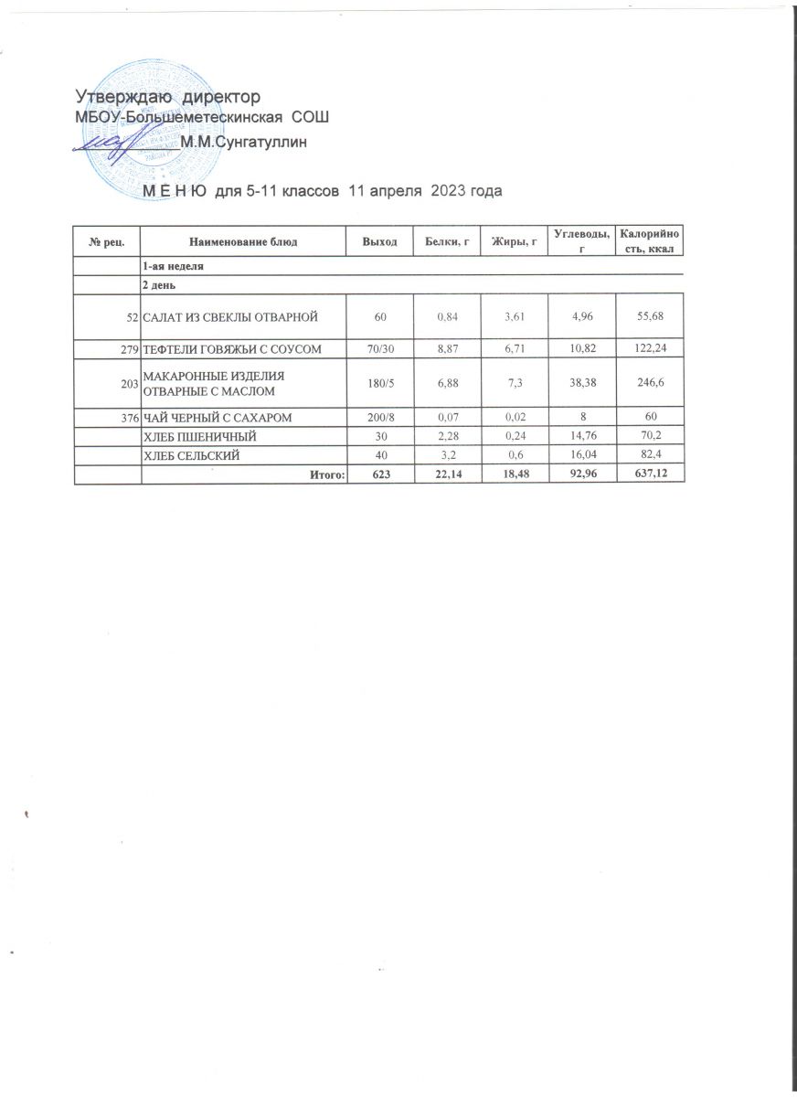 Меню для 5 - 11 классов на 07.04.2022 г.